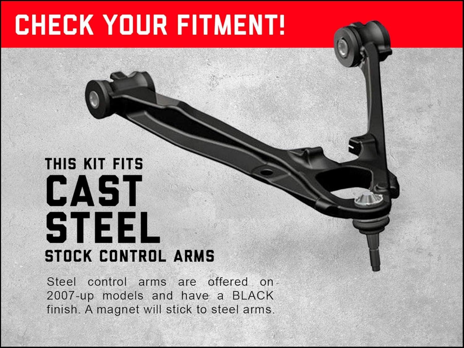 All-In-One Confidence: Includes everything needed for a straightforward install, backed by Rough Country’s Limited Lifetime Warranty. Compatible with Stock Cast Steel Control Arm models only.