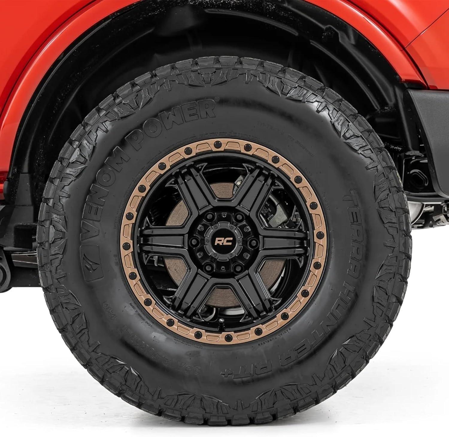 Bronze Outer Lip: The contrasting bronze lip adds a unique touch that sets these wheels apart from the rest, making your ride look as tough as it performs.