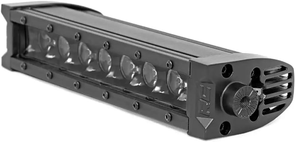 Command the Dark: Stay out later on the trails with Rough Country's sleek 8-inch Single Row CREE LED Light Bar. These sleek, single-row light bars offer enormous lighting power in a stylish, modern frame. With a powerful 3,200 Lumens and 40 Watt output, this LED light is a sight to behold. Rough Country's DRL Light Bars feature a section of LEDs designed to illuminate similar to the daytime running light option of modern headlights. This line of LED backlighting gives your vehicle increased visibility and an interesting look. The black panel design offers jaw-dropping good looks that blend perfectly with any vehicle using black accents like grilles, wheels, bull bars or steps! These all-weather lights feature a durable, die-cast aluminum housing and include a premium, waterproof, flat-wound, braided wiring harness with three-position switch and in-line fuse. Includes a snap on cover and Rough Country’s 3-year Warranty.