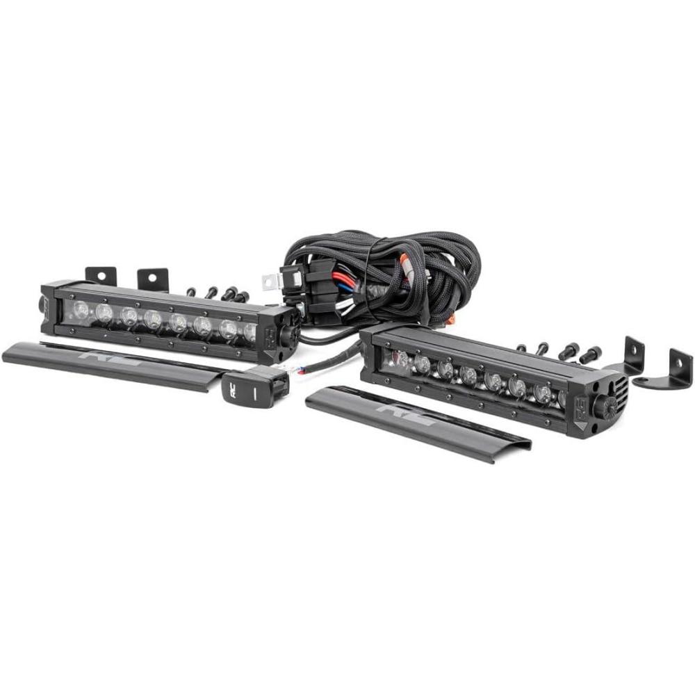Rough Country's DRL Light Bars feature a strip of LEDs designed to illuminate similar to the daytime running light option of modern headlights. This strip of LED backlighting gives your vehicle increased visiblity and an interesting look. Durable die cast aluminum housing Moisture Breather technology reduces moisture build-up behind the lends Includes premium, flat-wound wiring harness with on/off switch Includes snap-on cover Features both end mounts and adjustable base mounts for multiple mounting solutions Noise Silencers eliminate hum, whistle, and other wind noises associated with mounted LED Light bars 3 year warranty