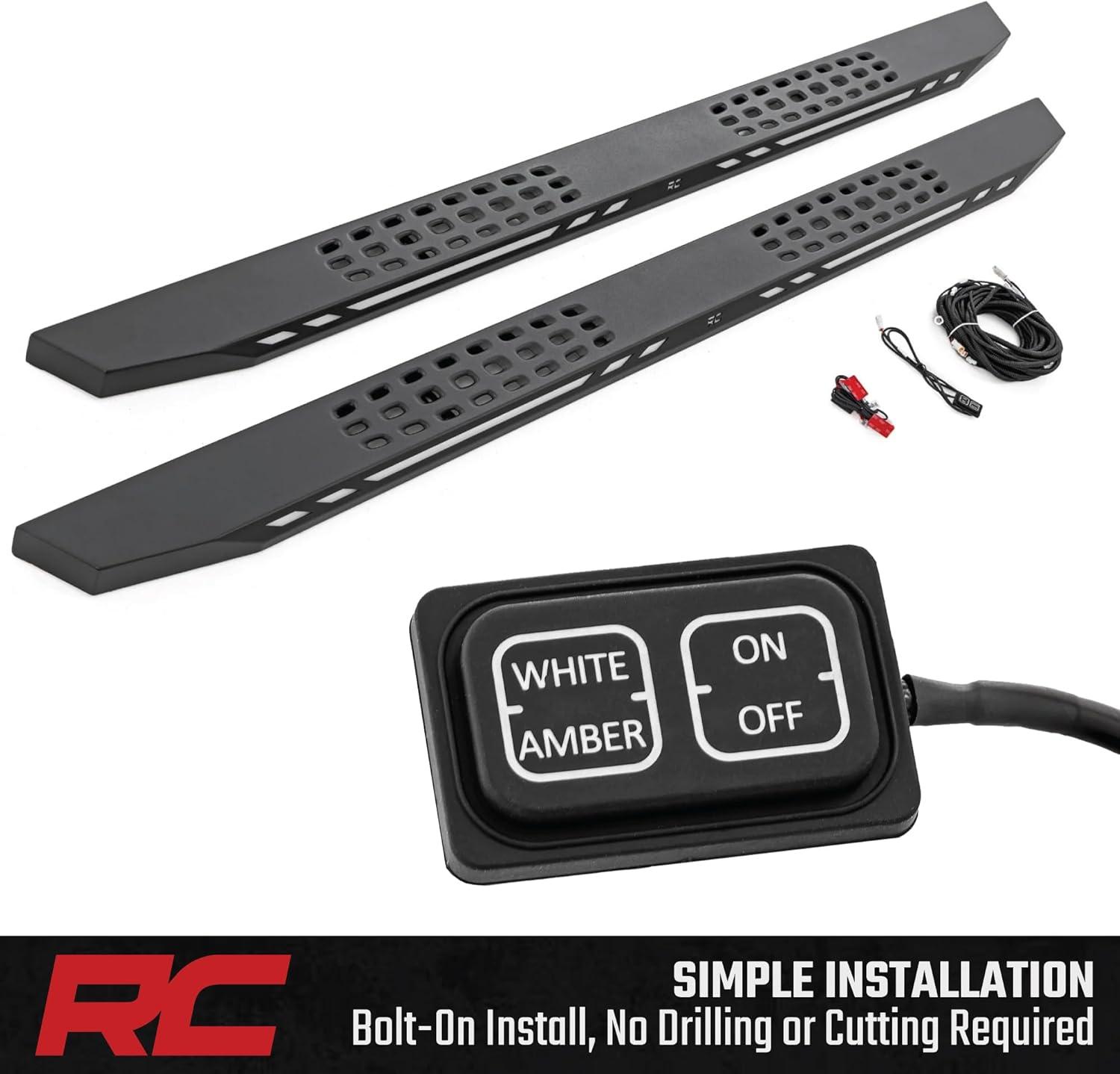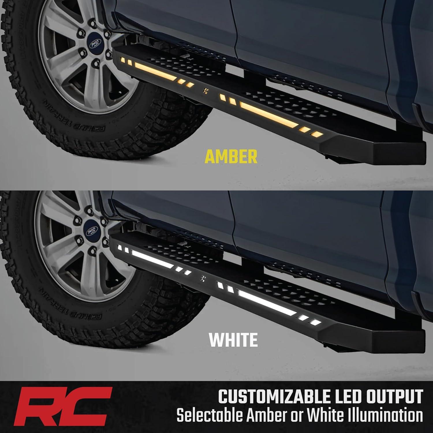 Rough Country AC2 Running Boards for Ford F-150/Lightning/F-250/F-350/Raptor (2015-2025) Crew Cab – Bolt-On Aluminum Side Steps with Auto-On Amber/White LED Lights
