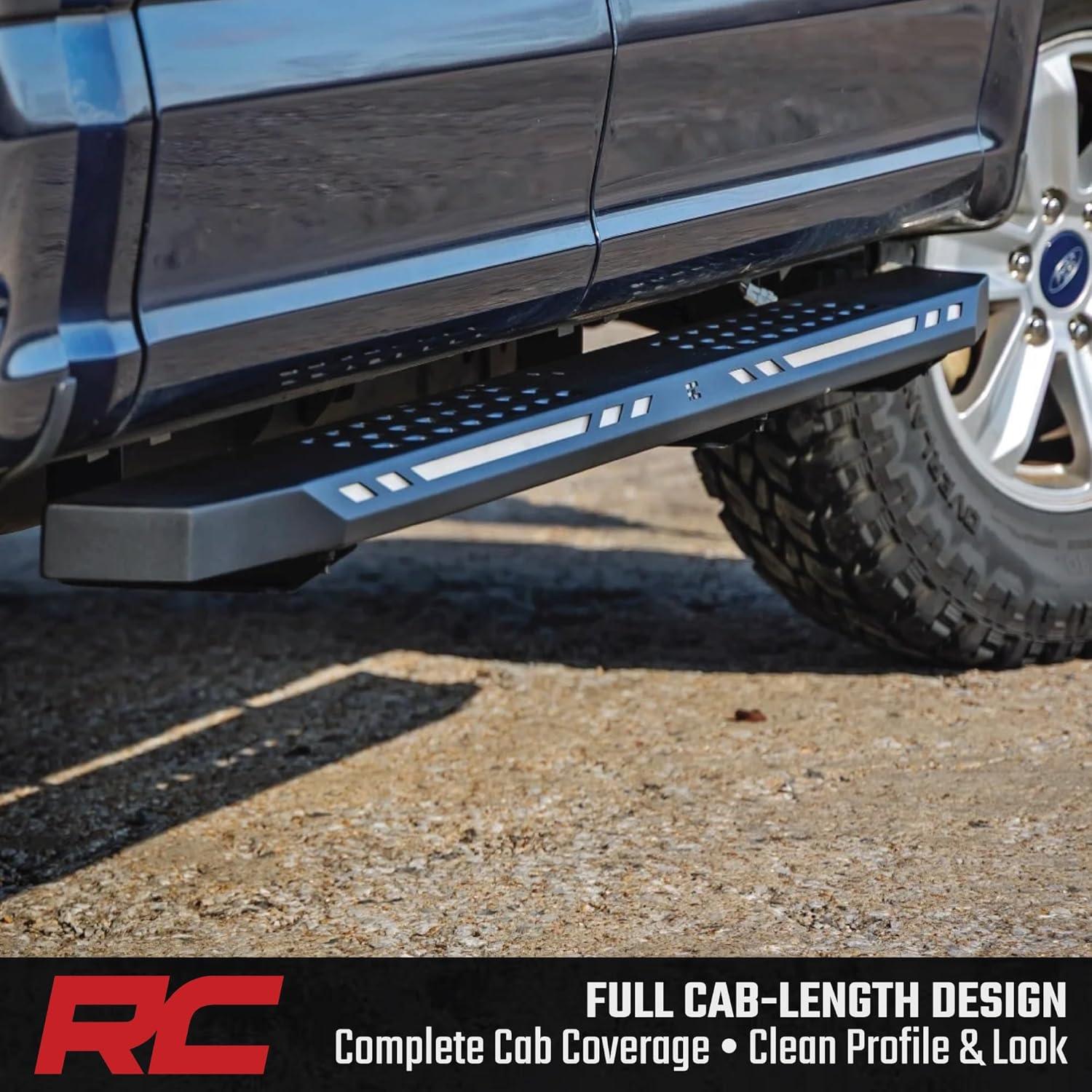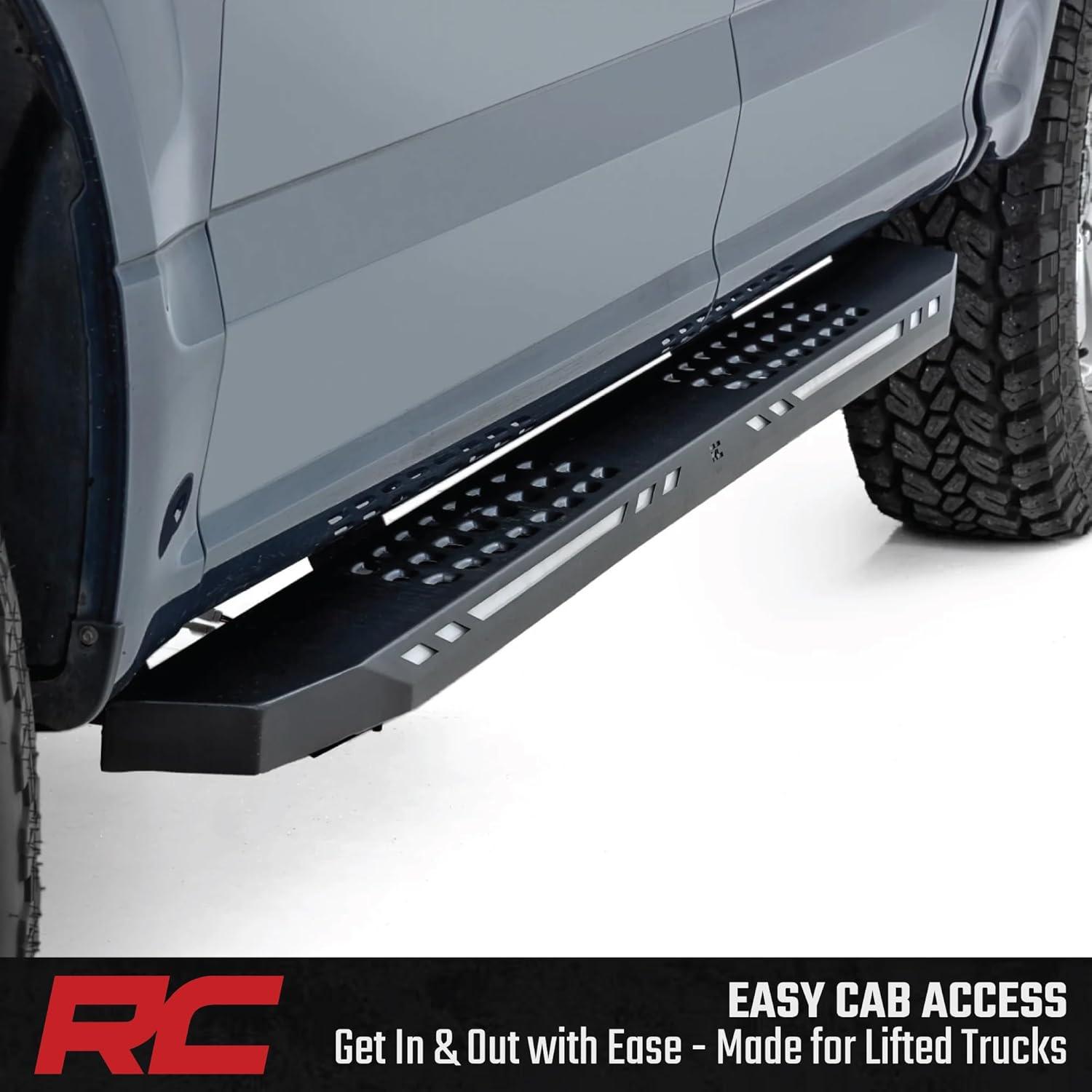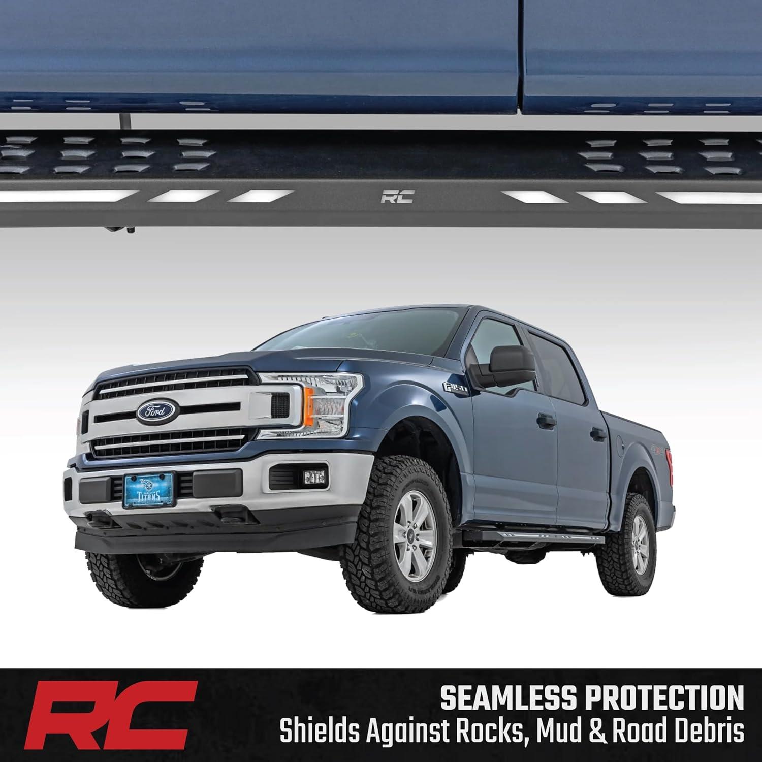Hassle-Free Installation: Install with ease using Rough Country's simple, bolt-on design. No cutting, welding, or drilling required. Backed by Rough Country's Limited Lifetime Warranty on structural components and a 1-year warranty on the finish for total peace of mind. Note: Fits Crew Cab models only: F-150 (2015–2025), F-150 Raptor (2017–2025), F-150 Tremor (2021–2025), F-150 Lightning (2022–2025), F-250 Super Duty (2017–2025), and F-350 Super Duty (2017–2025).