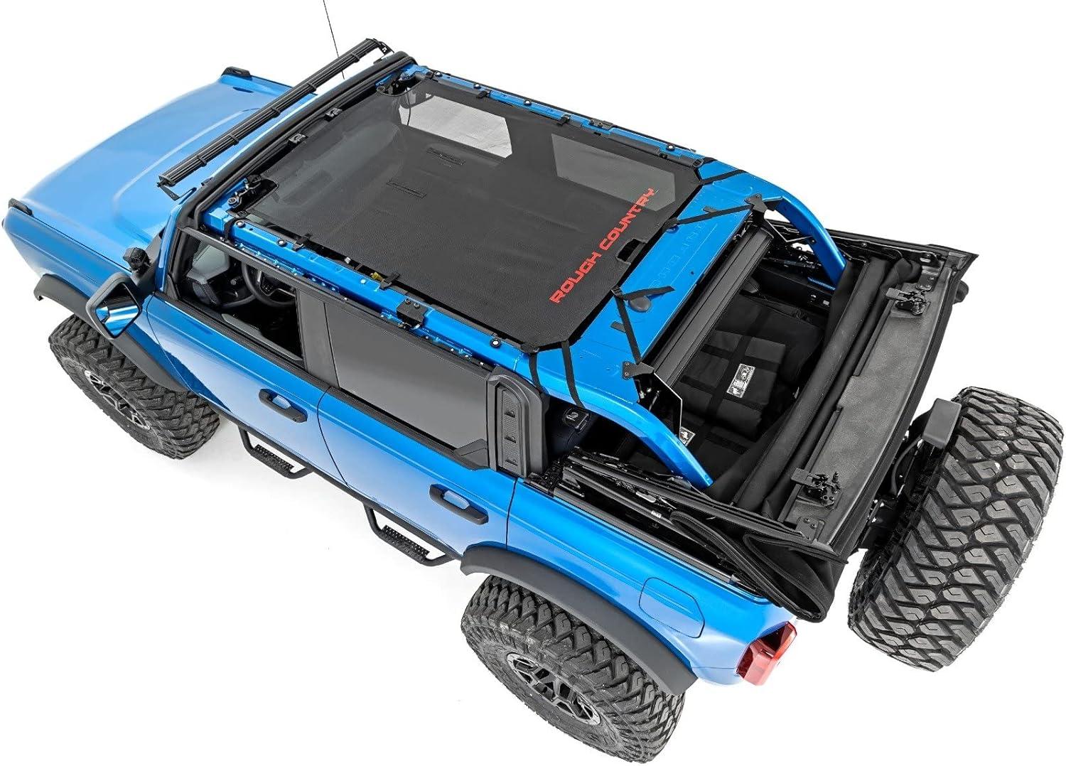 Installation. These easy-to-install Mesh Tops require no tools to install and can attach quickly and easily to your Bronco’s roll bars. Featuring a durable commercial-grade UV resistant mesh fabric and heavy-duty webbing, these mesh Bimini tops are built to last for a long lifespan of good looks and protection.