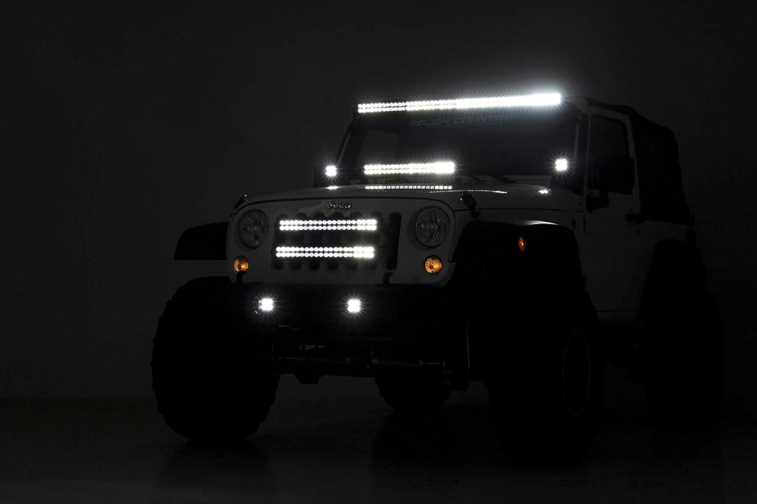 Upgrade your Wrangler with one of the coolest JK accessories available with Rough Country’s 2″ Cube LED Fog Light Kit.
