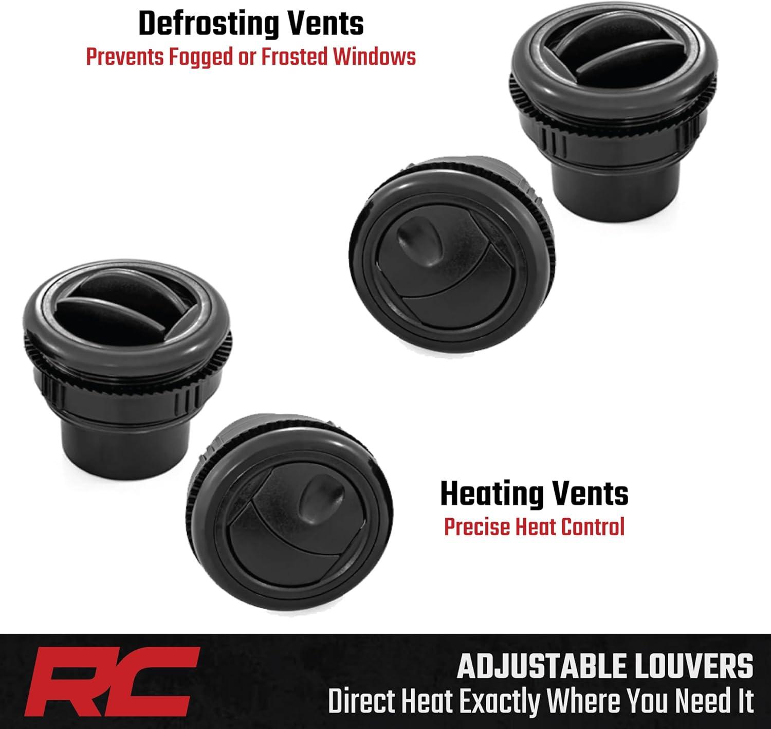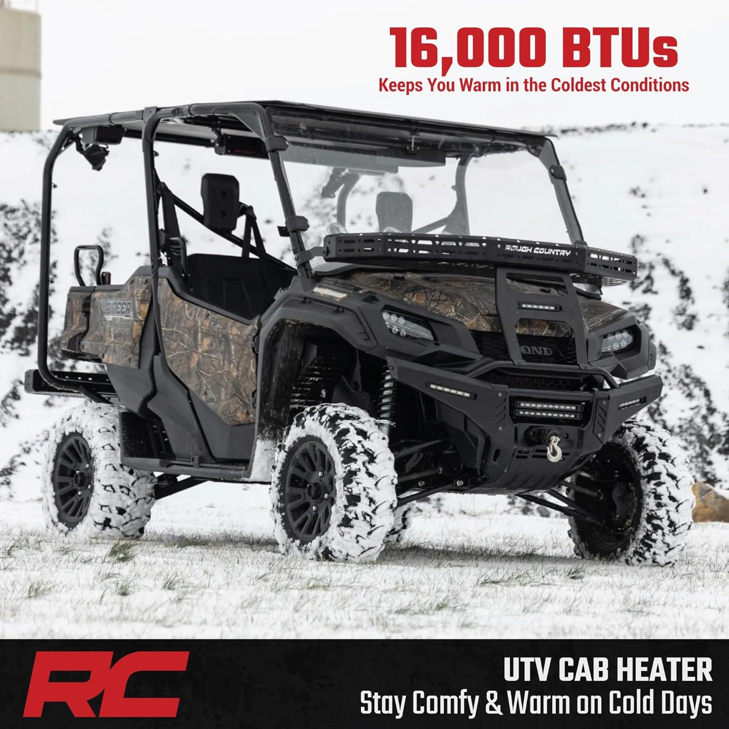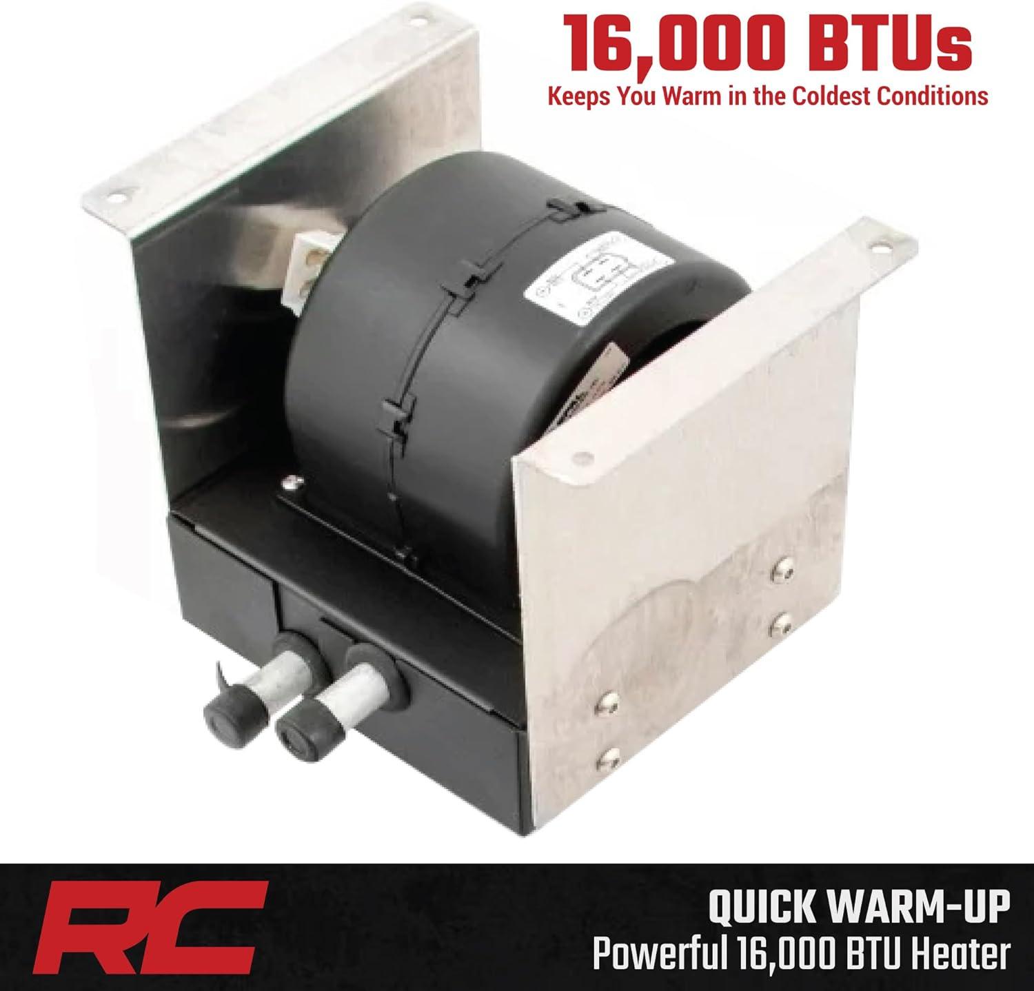 Keep the cold at bay and ride comfortably all year long with Rough Country’s UTV Heater Kit. This all-inclusive heating system provides a powerful 16,000 BTUs to ensure your cab stays warm, no matter where you’re riding. Designed to fit seamlessly into your UTV, this heater kit offers a factory-like appearance while maximizing interior space for a clean, flush install.
