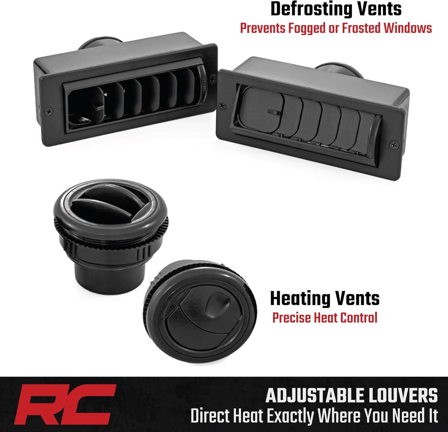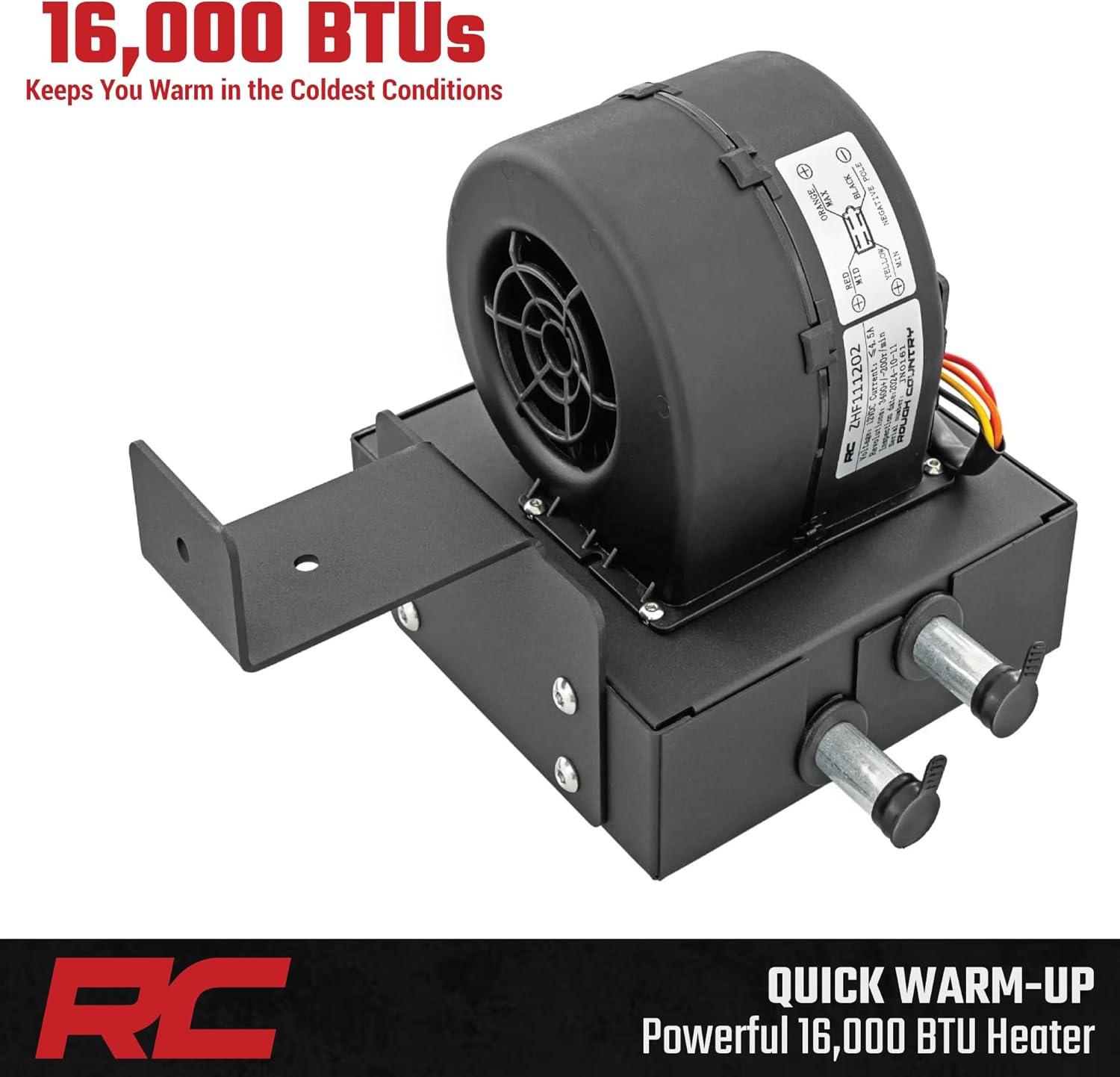 Keep the cold at bay and ride comfortably all year long with Rough Country’s UTV Heater Kit. This all-inclusive heating system provides a powerful 16,000 BTUs to ensure your cab stays warm, no matter where you’re riding. Designed to fit seamlessly into your UTV, this heater kit offers a factory-like appearance while maximizing interior space for a clean, flush install.