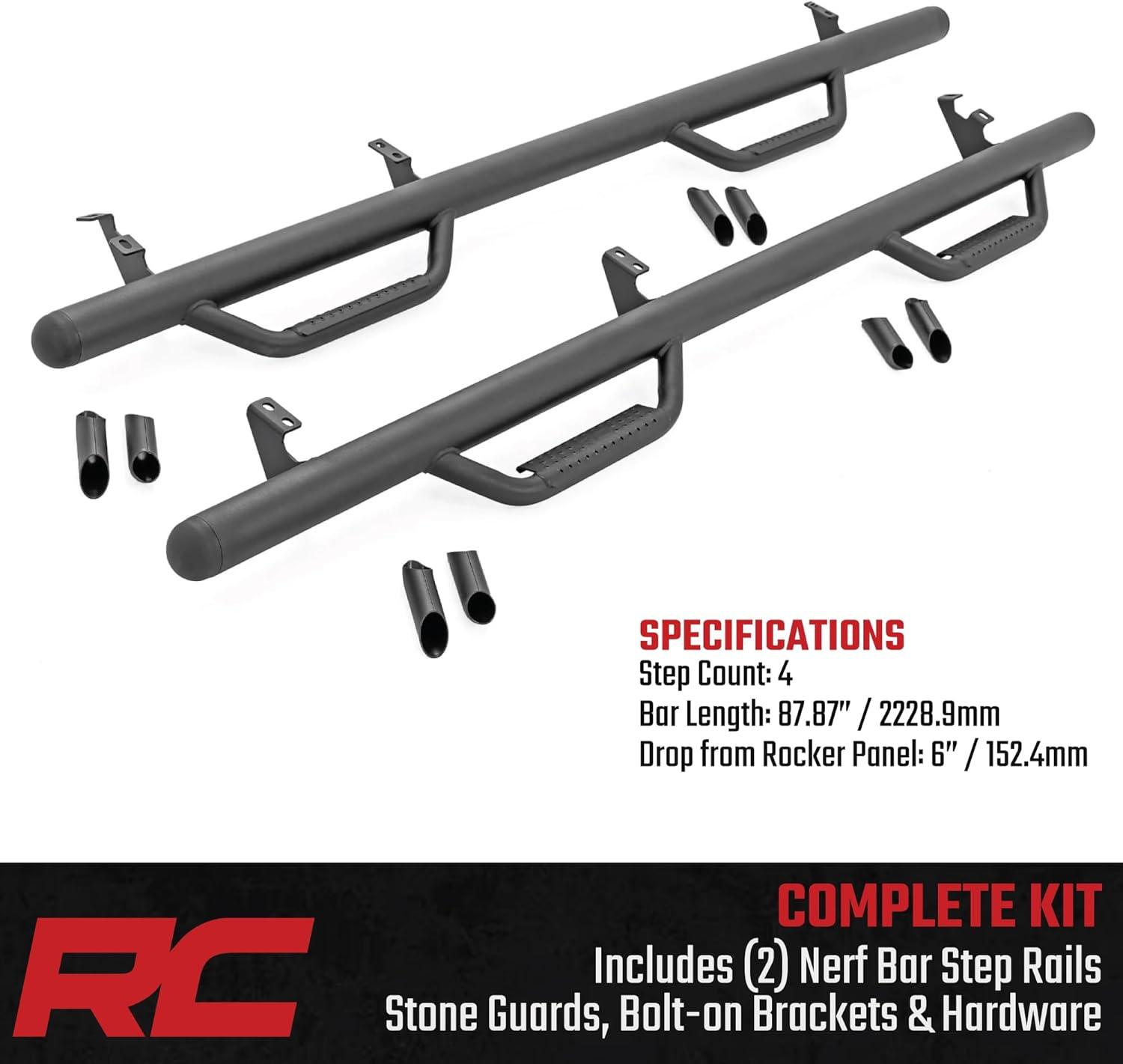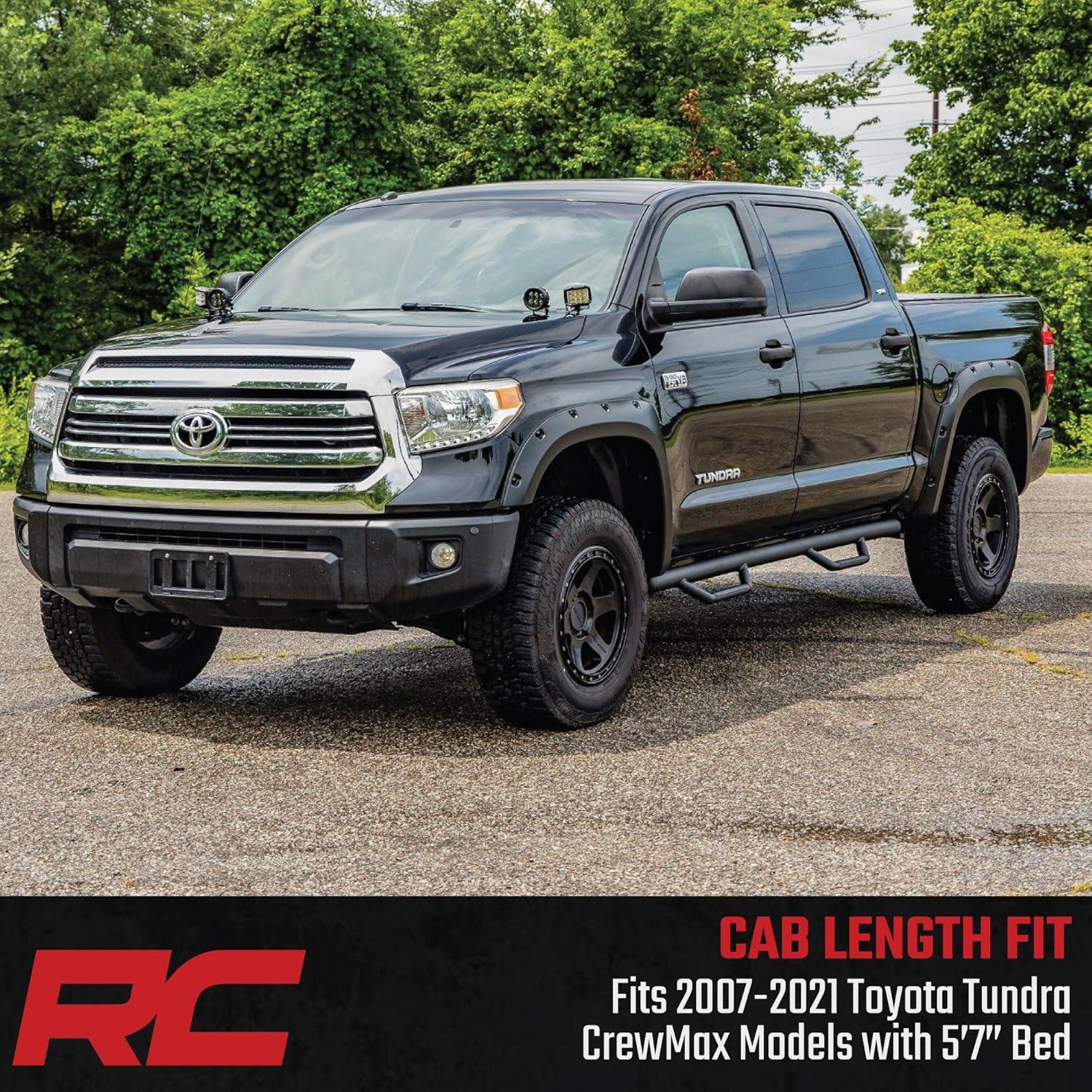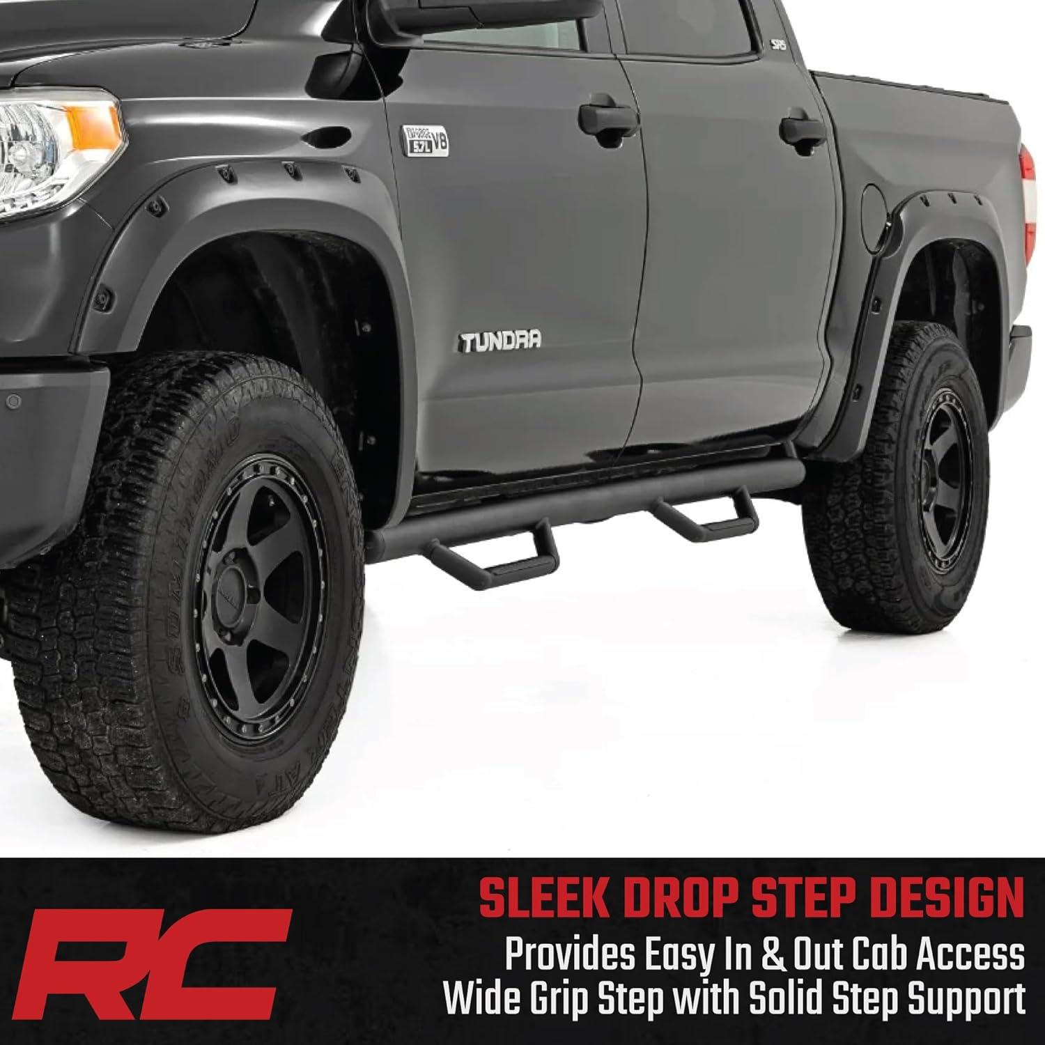 Rough Country Cab Length Nerf Step Bars for Toyota Tundra (2007-2021) Crew Max – Rugged Side Steps, Easy Bolt-On Install, Off-Road Ready