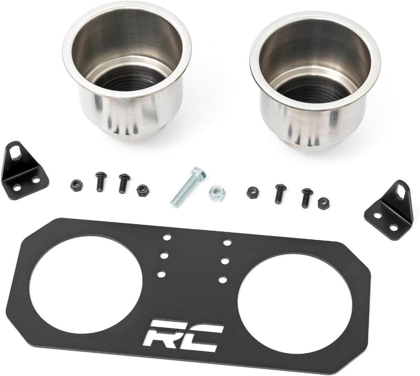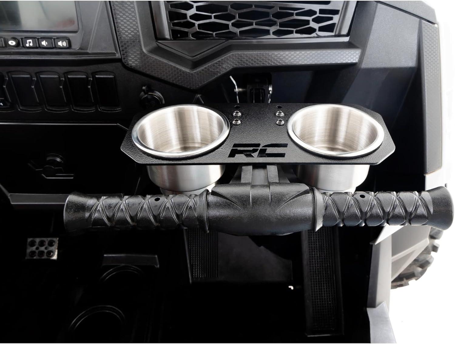 Innovative Upgrade Fed up with drink spills while taking your Polaris Rzr off-road? Rough Country's Dual Cup Holder is the perfect solution. It attaches easily to the passenger grip handle, accommodating both cans and larger bottles. Crafted from durable 11ga steel with a tough powder coat finish, it's designed to withstand any rugged trail. With an easy, bolt-on installation you’ll be back to the trails in no time, all while your drinks stay right where they belong.