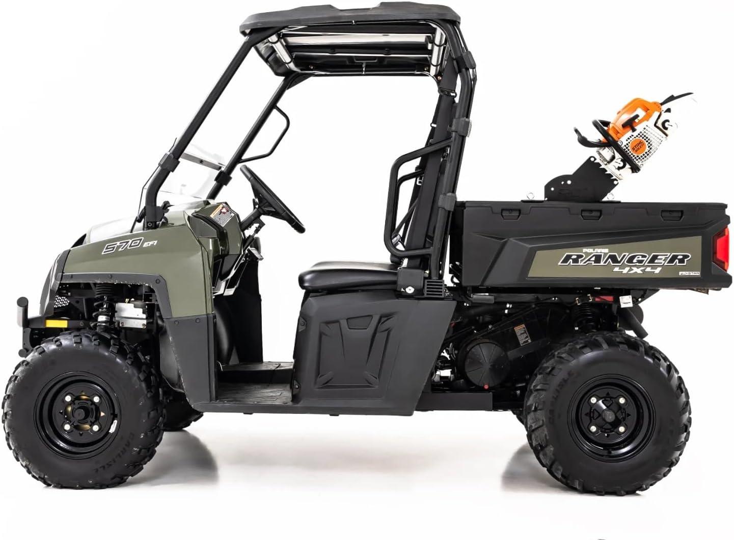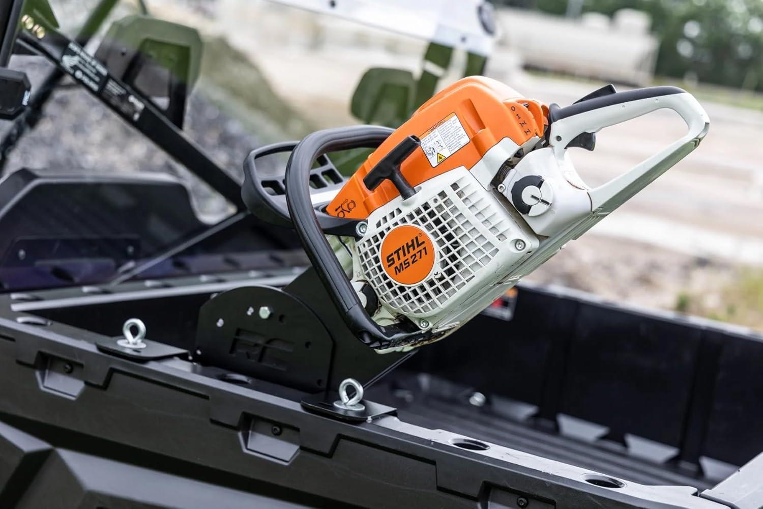Driver or Passenger Side Fit: Securely holds chainsaws up to 18 inches and adjusts to fit either side of your UTV’s bed, giving you flexible mounting options for maximum convenience.