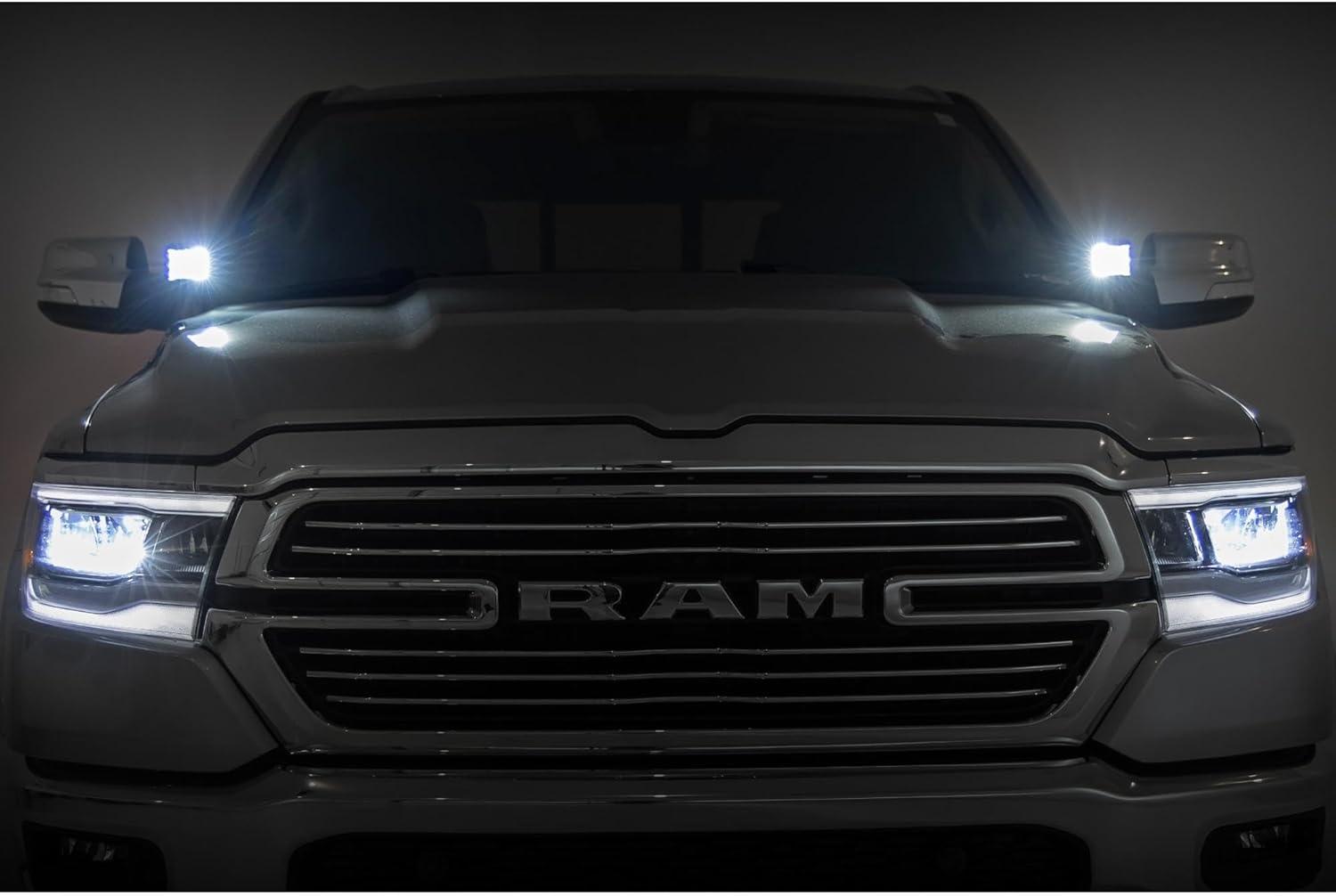 Light Up the Night. Rough Country's Ditch Mount LED Lights for your fifth-generation Ram 1500 give you all the performance and durability that Rough Country is known for and provide plenty of light coverage for use on the trail or work site. These LED lights have a powerful punch of light, illuminating both sides of the trail for maximum safety.