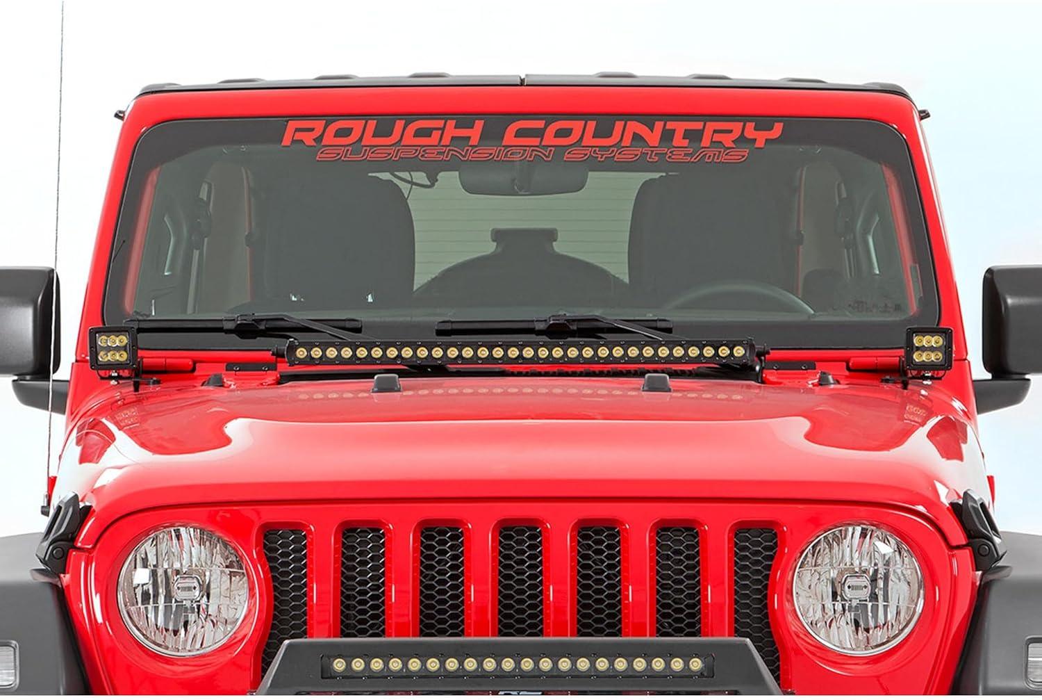 imageRough Country Dual 2 LED Light Kit for Jeep Wrangler JL amp Gladiator JT 20182025  Lower Windshield Mount 80W Spectrum Series 9600 Lumens Wide Flood Beam