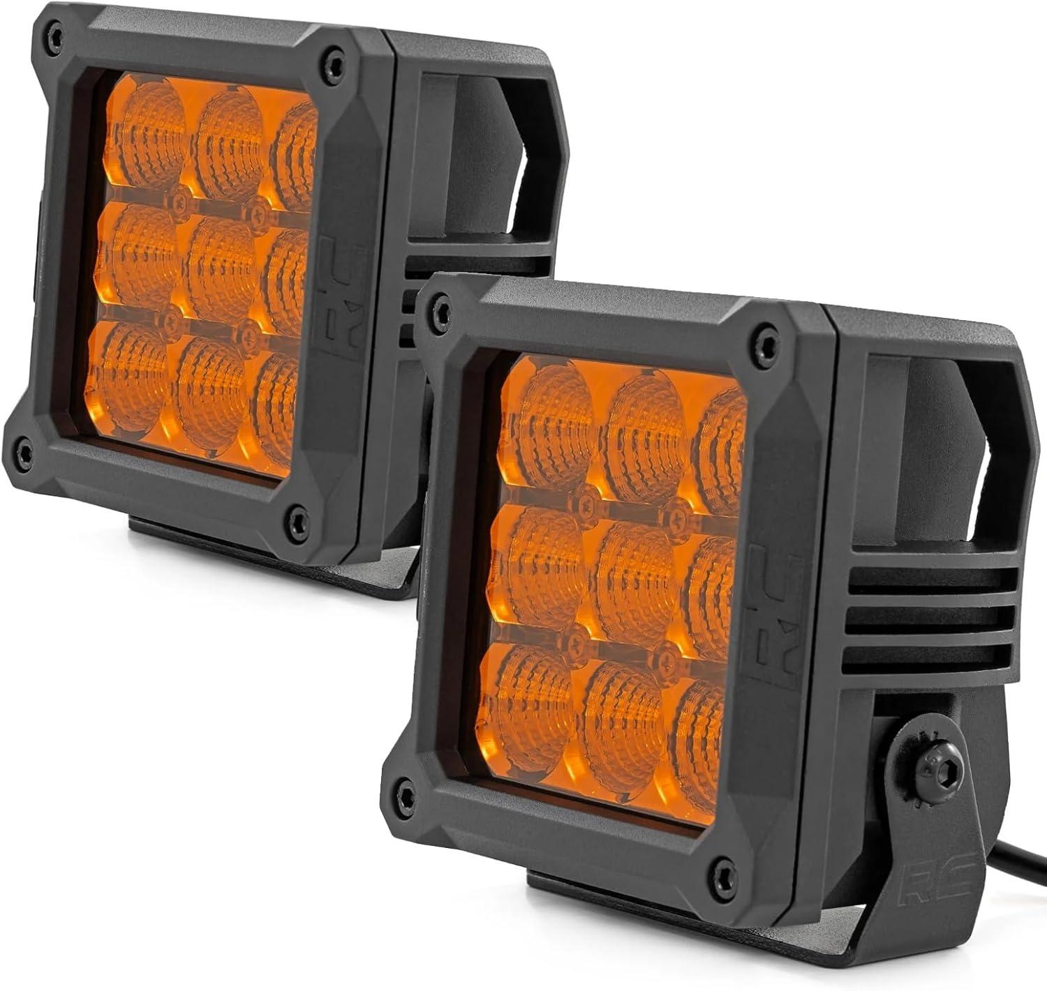 Command the Dark: Take visibility to the next level with Rough Country's brightest 4-inch LED cubes! This powerful duo blasts an incredible 8,100 lumens with 90 watts of high-intensity illumination, powered by nine advanced 5-watt CREE LEDs per light. Engineered for versatility, these LED cubes feature a built-in amber daytime running light, enhancing visibility and seamlessly blending with modern DRL headlights. The amber lens improves visibility in fog, rain, and snow while reducing glare for a clearer, more comfortable driving experience. Plus, the combination beam pattern-8 degree spot and 90 degree flood-delivers a perfect balance of focused and wide-range lighting for any adventure.