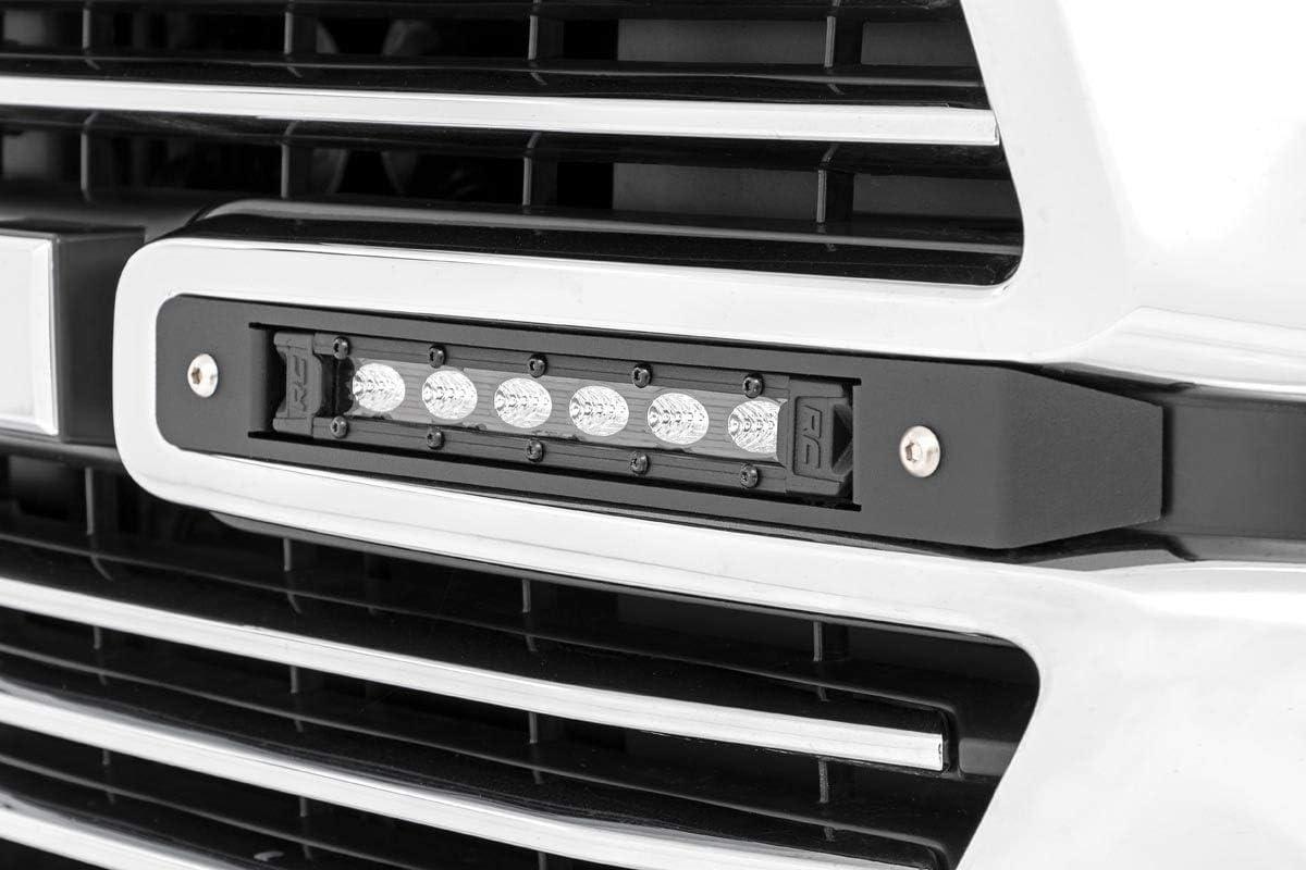 COMMAND THE DARK with Rough Country's 6″ LED Grille Kit the RAM 1500. This sleek, recessed LED kit fits into the two slots in the factory grille, providing the perfect location for forward-facing LED power. Rough Country's 6″ LED Grille Kit fits in so well it looks like a factory upgrade! Despite the tiny size, this powerful, dual 6″ LED setup provides a jaw-dropping 2,880 lumens of lighting power with a 90-degree flood beam, enough to light up the trail ahead and then some! Each LED features a die cast aluminum housing and IP67 waterproof rating, so its sure to withstand the elements each and every time. Upgrade your RAM 1500 with Rough Country's 6″ LED Grille Kit today and release your trucks true potential! Includes 3-year warranty.