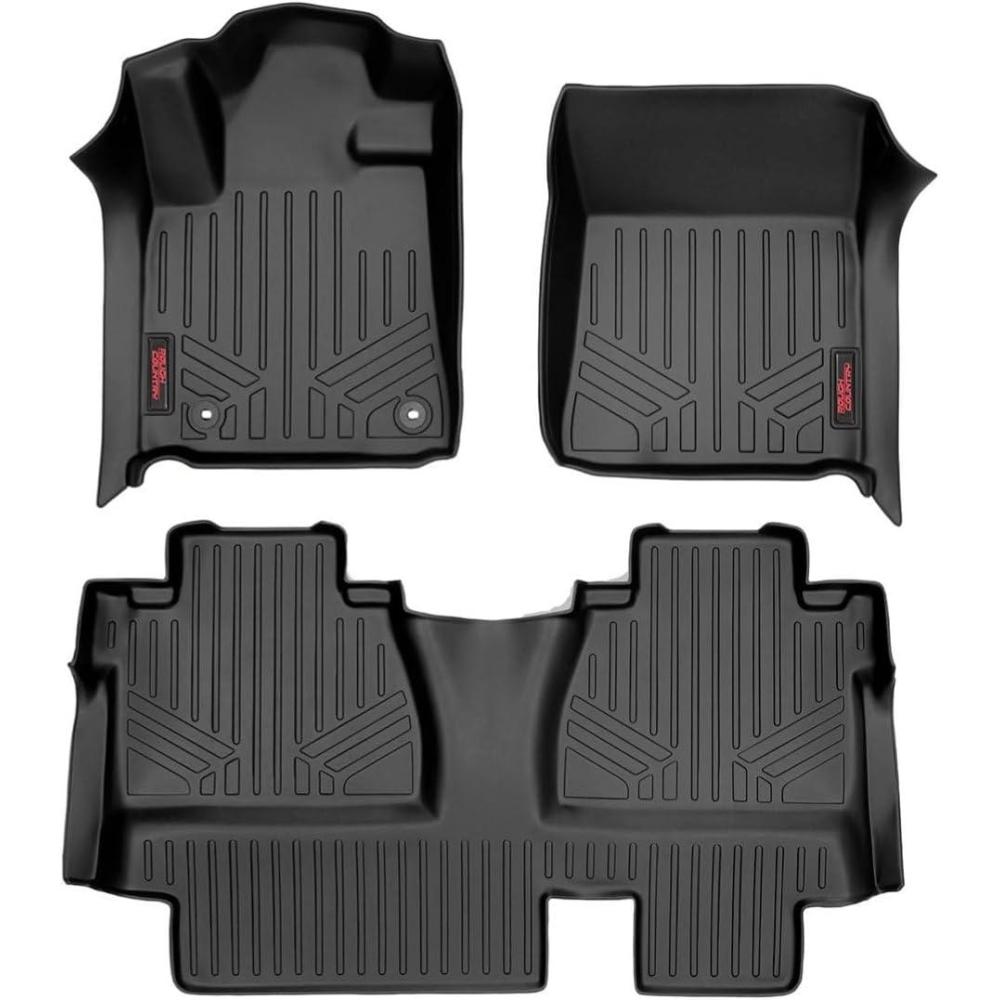Lifetime Warranty Protection: Backed by Rough Country's Limited Lifetime Warranty. Fits Toyota Tundra Double-Cab (2014-2021) models, includes (2) front & (1) rear floor mat.