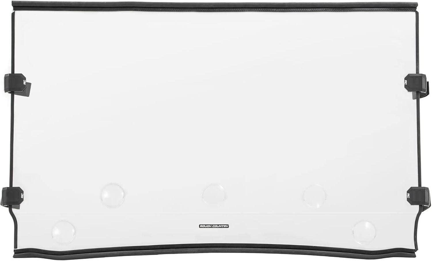 Keep your cab safe from rocks, branches, and debris with Rough Country’s Scratch-Resistant Windshield. Designed for both protection and comfort, it features 5 adjustable vents that let you control airflow as needed – fully open, closed, or half-open for versatile cooling. Whether you're tackling dusty trails or riding on hot days, the 360-degree rotating vents ensure superior ventilation for a more enjoyable ride. Made from durable 0.25″ thick polycarbonate, this windshield offers unbeatable toughness, clarity, and longevity. Precision-cut for a perfect fit, it’s far stronger than glass or acrylic and ready to withstand the harshest off-road conditions. Each windshield is coated with AR2 hard-coating for added scratch resistance and UV protection, ensuring long-lasting clarity and durability. A contoured design and premium rubber seal provide a snug, rattle-free fit that keeps out dust, debris, and water while enhancing the rugged look of your UTV. Compatible with both factory and most aftermarket roofs, this windshield replacement offers hassle-free integration without compromising style or performance. Whether you’re upgrading your ride or replacing an old windshield, Rough Country’s UTV and ATV windshields are must-have off-road accessory. Proudly made in the USA, backed by Rough Country's limited lifetime warranty.