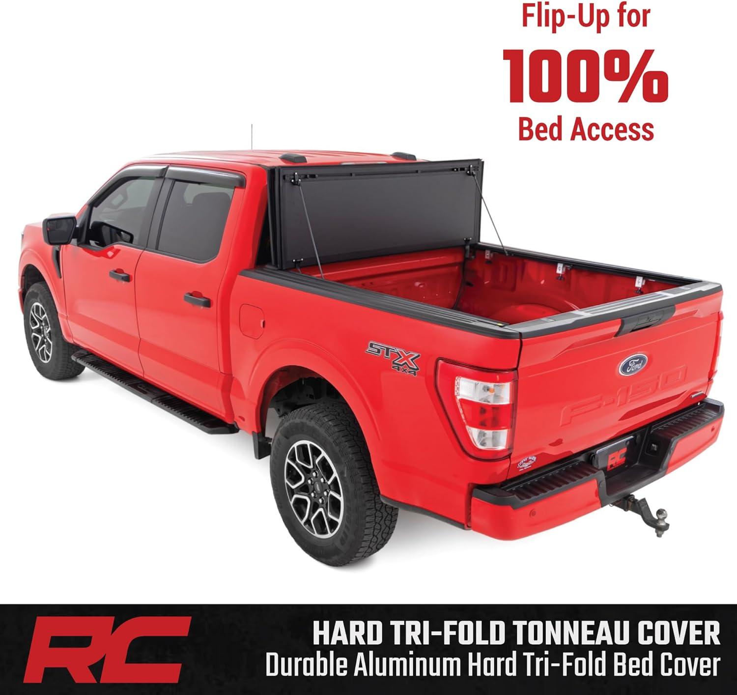 Rough Country Hard Flip-Up Truck Bed Tonneau Cover for Ford F-150 (2015-2020) - Aluminum Tri-Fold Bed Cover, Fits 5'7 (67.1") Short Bed