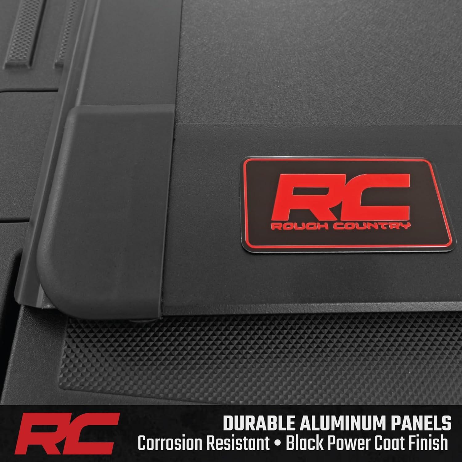 Sleek, Low Profile Design: Features a flush fit with a tri-fold design for quick cargo access. Built with a corrosion-resistant, matte black aluminum panels and frame for style and durability.