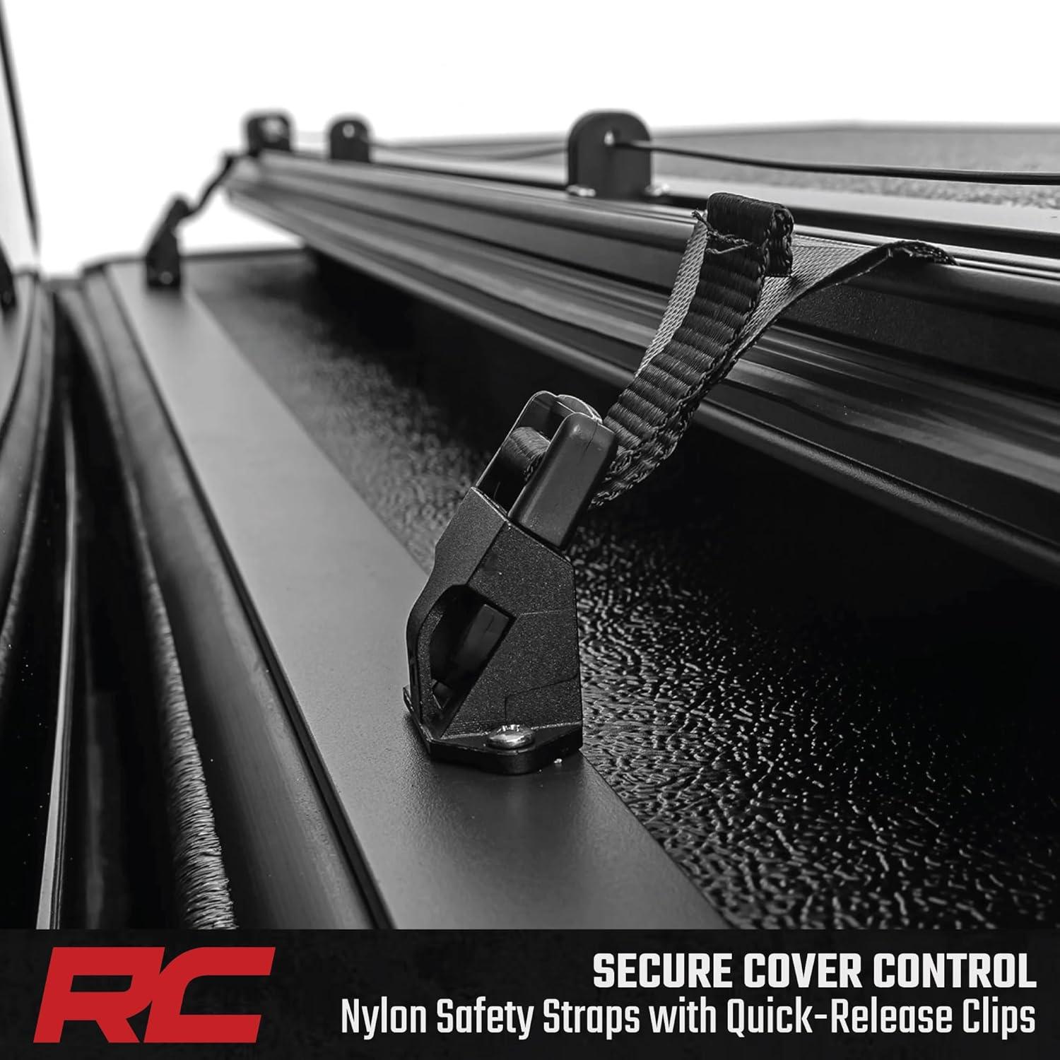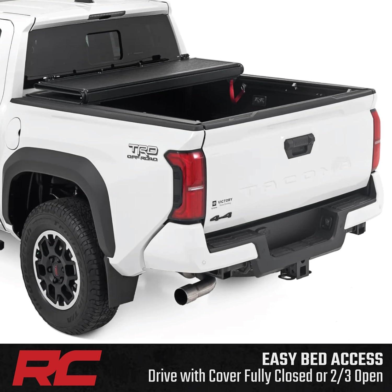 Quick Bed Access: Tri-fold design lets you access gear fast – open one, two, or all panels as needed. Nylon straps secure cover in the 2/3 open position, so you drive with it in the 2/3 open or closed position.