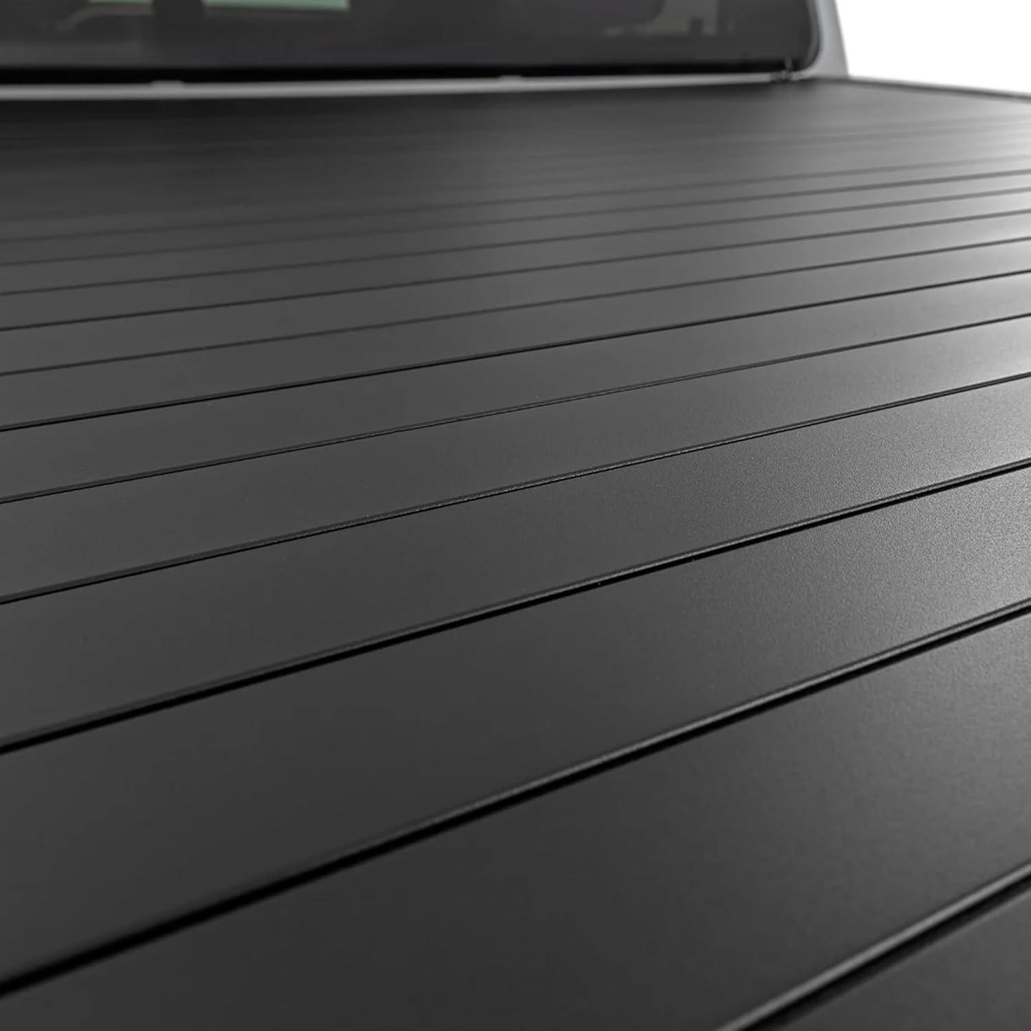 Flush, Low-Profile Design: With a stylish matte black finish and sleek aluminum slats, this cover not only protects but also adds a stealthy, streamlined look to your truck.