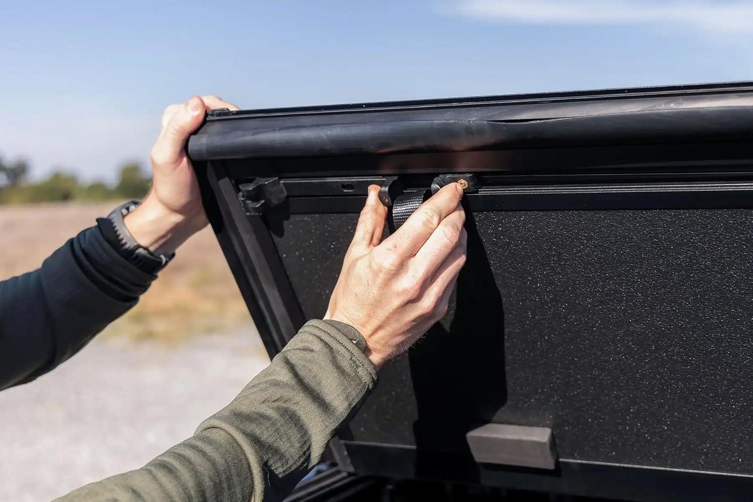 Built to Last: Our bed cover is crafted from lightweight aluminum and boasts a resilient powder coat finish. This coating resists corrosion and wear, ensuring that your truck bed maintains its pristine appearance even in harsh weather conditions.