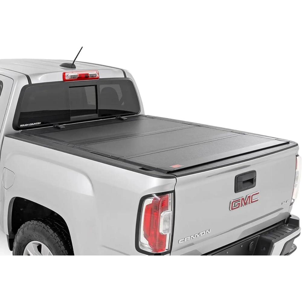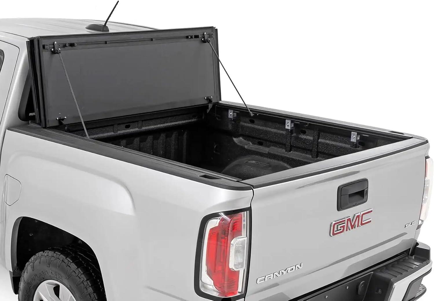 Elevate your Colorado/Canyon's truck bed and get full access, unmatched durability, and superior weather protection with Rough Country's Hard Tri-fold Flip-up Bed Cover!