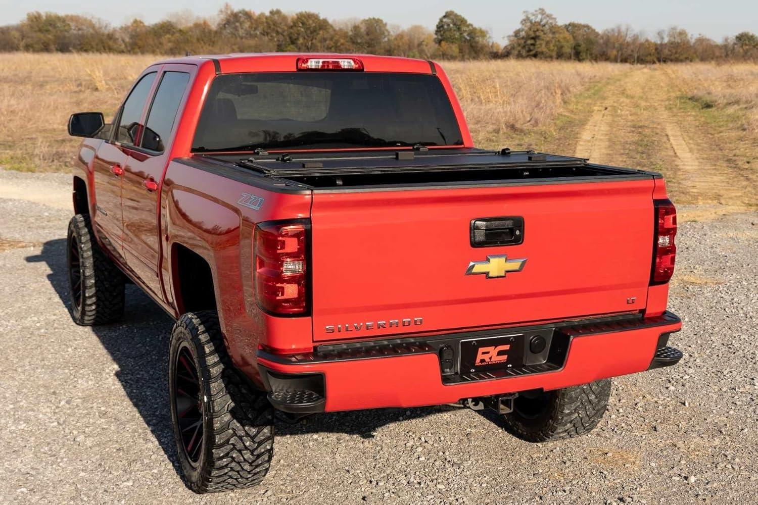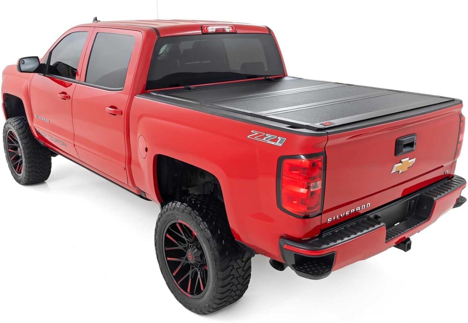 Rough Country Hard Tri-Fold Flip-Up Truck Bed Tonneau Cover for Chevy Silverado & GMC 1500/2500HD/3500HD (2014-2019) – Fits 6’7″ (78.8-78.9″) Bed with Rail Caps