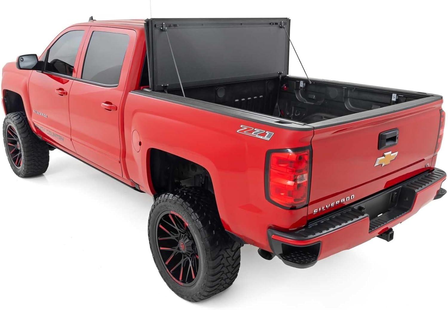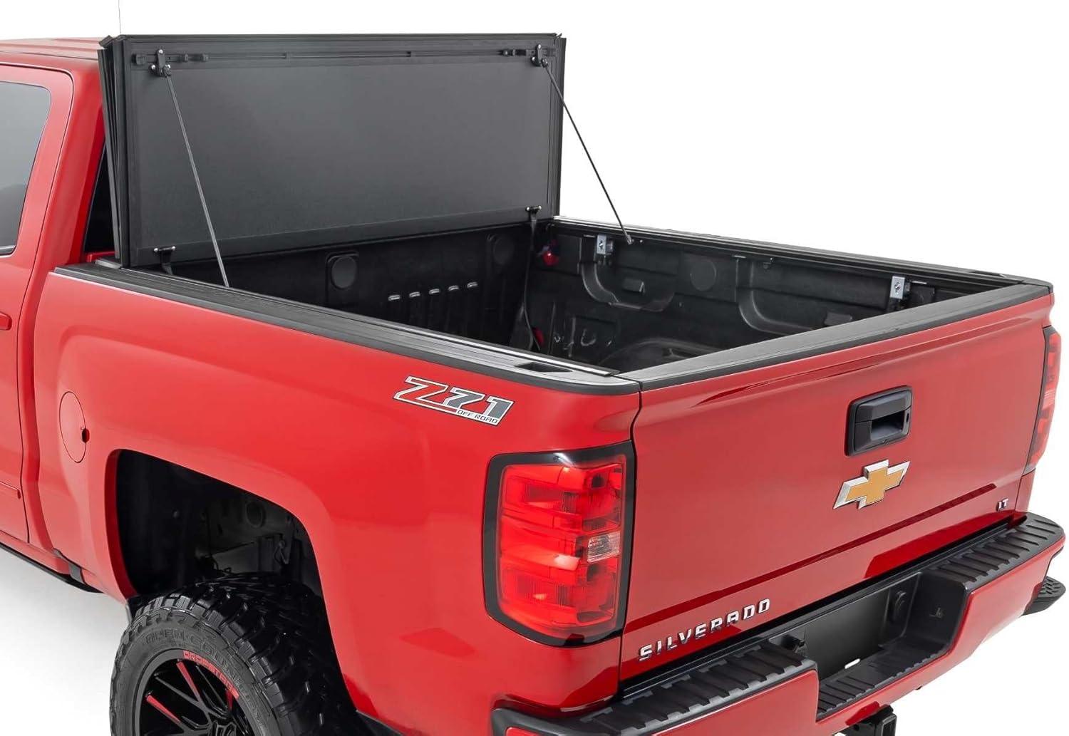 Rough Country Hard Tri-Fold Flip-Up Truck Bed Tonneau Cover for Chevy Silverado & GMC 1500/2500HD/3500HD (2014-2019) - Fits 6'7" (78.8-78.9") Bed with Rail Caps