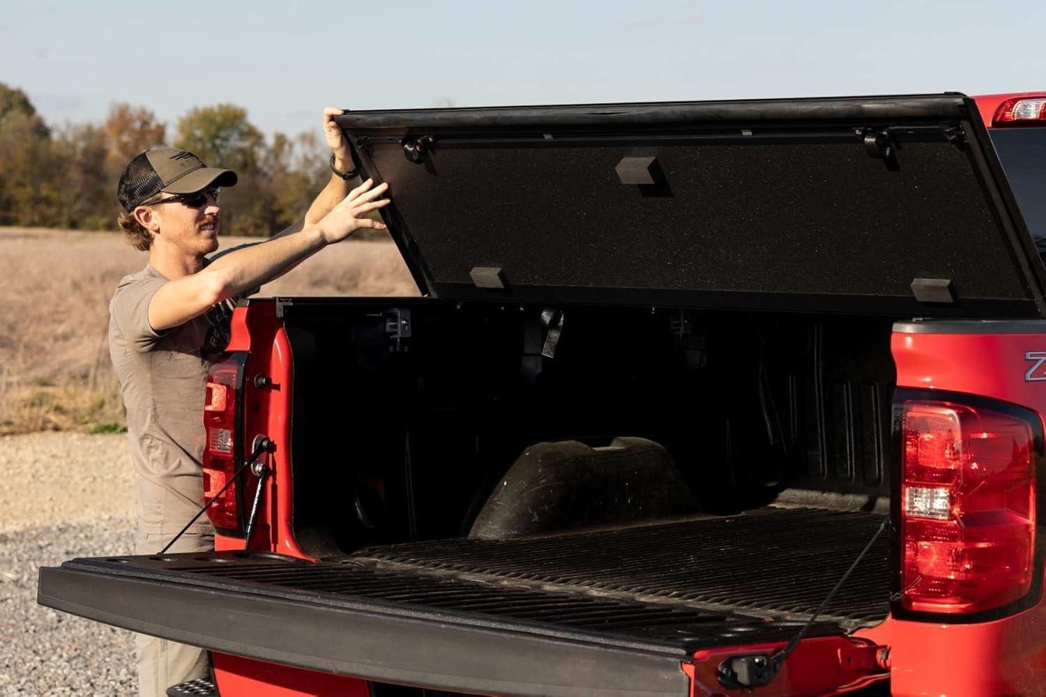 Elevate your Chevy/GMC's functionality and appearance with Rough Country's GM Hard Tri-fold Flip-up Bed Cover. Unlike traditional bed covers that limit access to your truck bed, our innovative Flip-up design grants you complete access to your truck bed, making it easier to load and unload large items.
