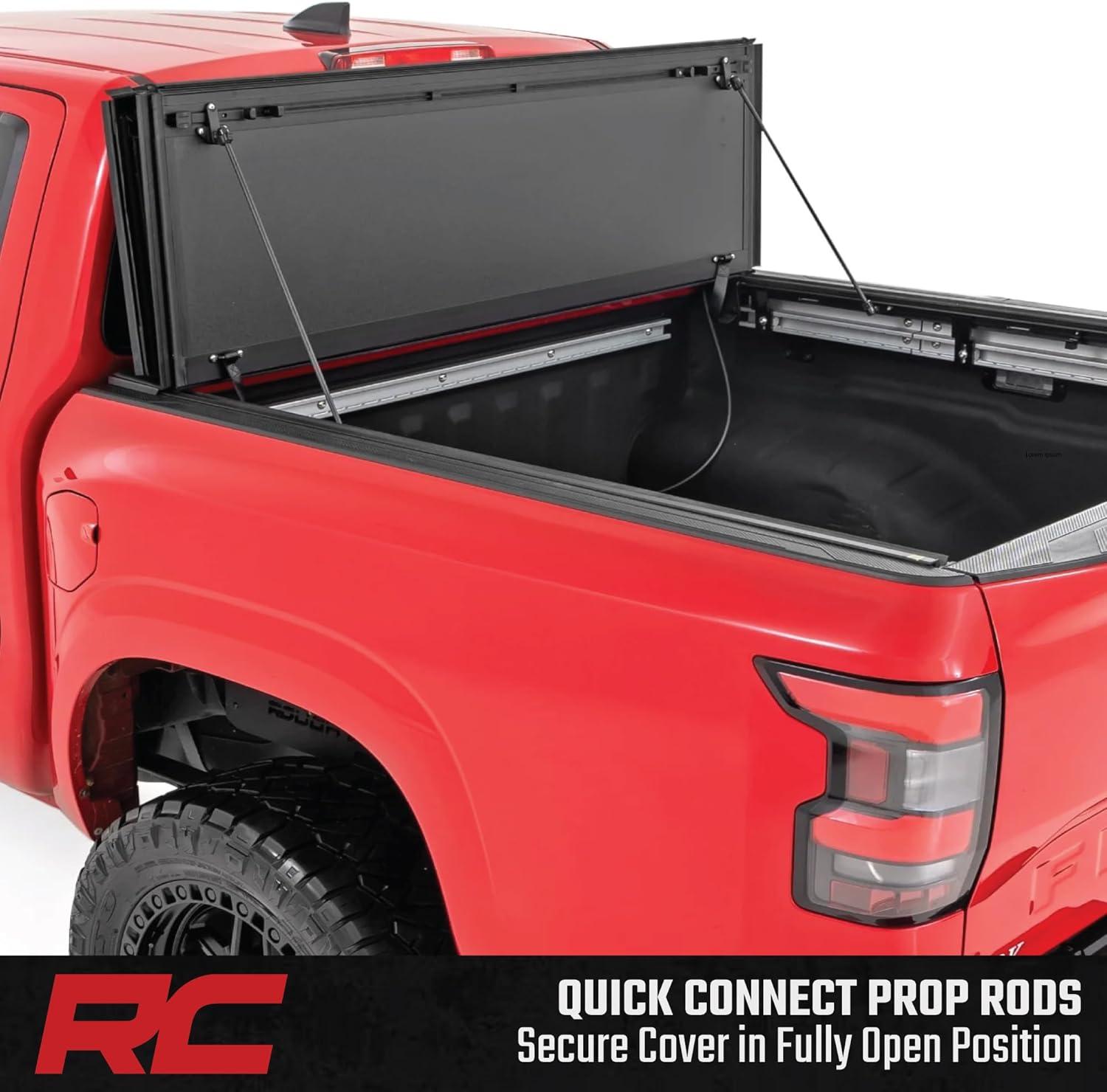 Rough Country Hard Tri-Fold Flip Up Truck Bed Tonneau Cover for Nissan Frontier (2022-2025) – Fits 5′ (58.9-59.5″) Bed, All-Weather, Flush Aluminum Panels