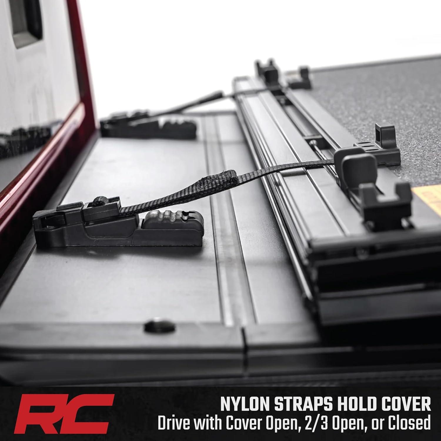 Full-Bed Access: With Rough Country's Tri-fold Flip-up Bed Cover, you can conveniently flip up the cover, allowing full-bed access without the hassle of removing the cover.