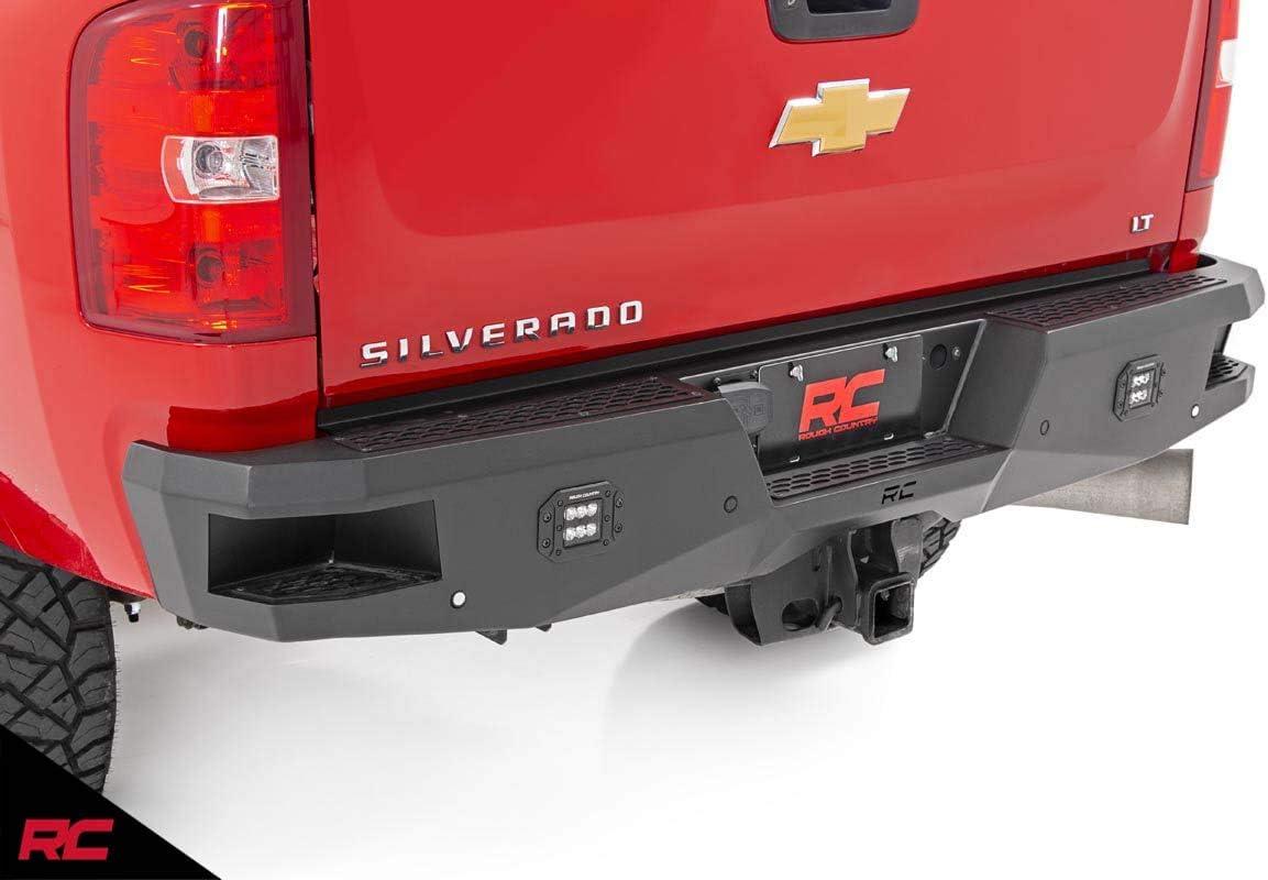Give the rear of your truck an aggressive, new appearance with Rough Country's Rear LED Bumper. This easy-to-install upgrade gives your truck an improved look and better functionality. Each bumper features two Rough Country Black-Series 2in LED Flush Mount Cubes for rear illumination, and two integrated steps for easy access to the bed. Rough Country's Rear LED Bumper is made of a durable, all-steel construction that is ready to handle whatever you dish out. Each bumper also includes sensor relocators to allow you to retain the vehicles anti-collision system. Unlike some aftermarket bumpers for this model, Rough Country's LED Rear Bumper allows you to retain the factory receiver hitch for towing. Complete the look with Rough Country's Front LED Bumper for a total transformation of your truck. Includes a 3-year Warranty!