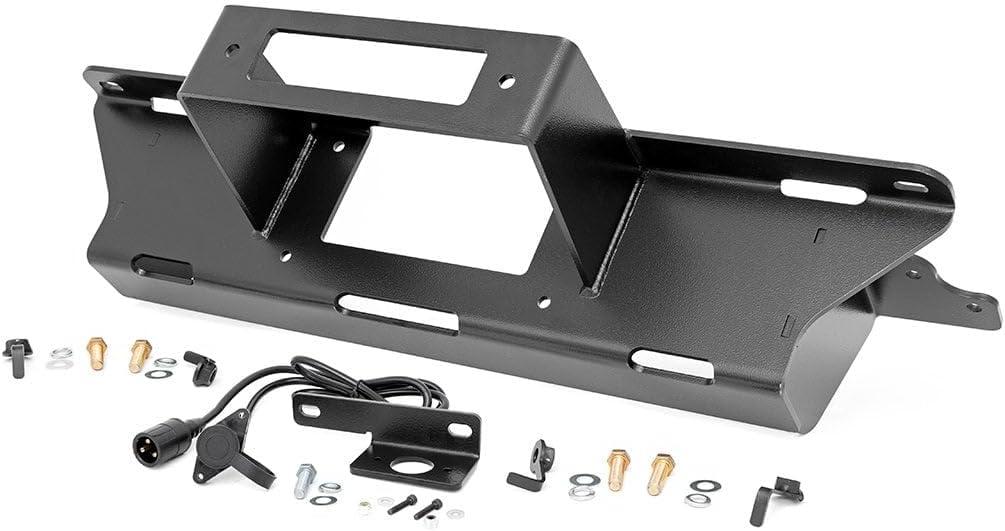 A sleek recovery solution that looks like factory equipment! Rough Country's Hidden Winch Plate for 99-06 Chevy / GMC 1500 offers a stylish approach for adding a recovery system to your pickup. Rough Country's GM hidden winch plate can fit most standard size winches up to 12,000 lbs. and does not impede air flow to the radiator. Unlike many hidden winch solutions, Rough Country's GM Hidden Winch Plate boasts an easier install process that does NOT require moving your factory bumper from stock location. This kit also includes a wiring extension that allows you to easily connect your winch remote even though the unit is recessed into the bumper! With a black powder coated 1/4″ Steel Frame and Grade 8 Hardware, this Winch Plate is ready to stand up to the elements, on and off-road. Includes Rough Country's Lifetime Replacement Guarantee!