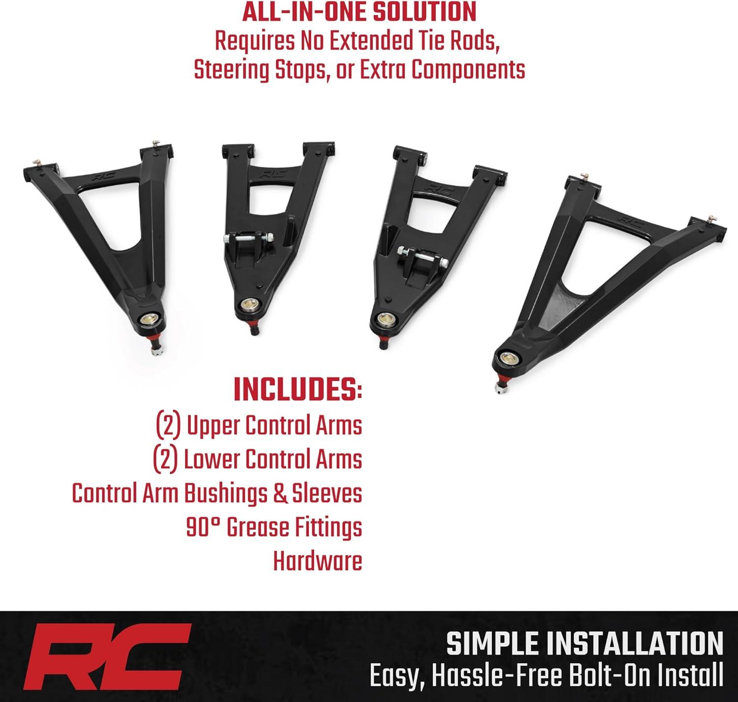 With Rough Country's Forged Aluminum Control Arms, you'll gain more clearance and unbeatable durability. Upgrade your Polaris Ranger today and experience the Rough Country difference. Note: ONLY fits models with 62″ track width. 2018 Ranger 1000 High Lifter Edition, you will need stock length Ranger 1000 axles and tie rods. High Lifter Edition length axles and tie rods are not compatible with this kit. Compatible with 2018–2020 Polaris Ranger XP 1000 and Ranger Crew XP 1000 models, including the NorthStar Edition, NorthStar HVAC Edition, EPS, and special editions such as the Back Country and 20th Anniversary models. Designed to fit both single and Crew configurations, ensuring a precise fit across all premium and climate-controlled Ranger XP 1000 variants from this period.