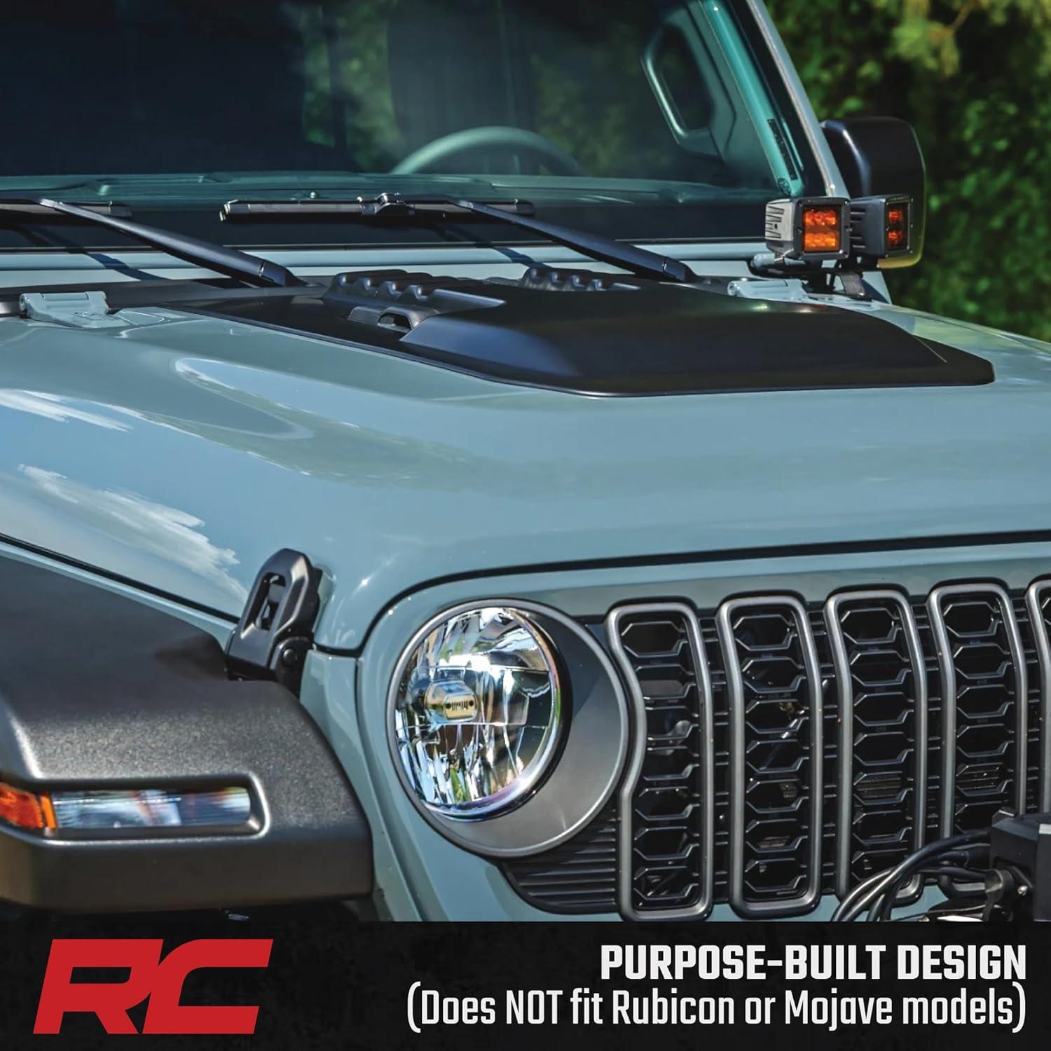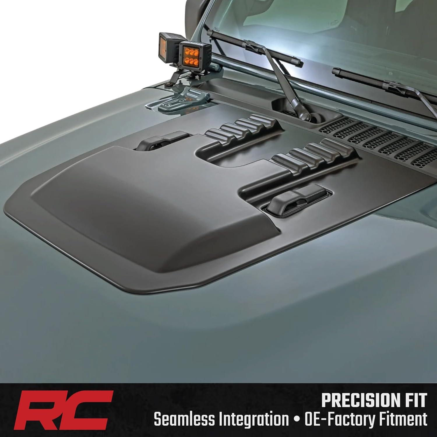 Stand Out with Bold Attitude: Tired of blending in with the crowd? Give your Jeep Wrangler JL or Gladiator the aggressive edge it deserves with Rough Country's Hood Scoop. Designed to turn heads and command attention, this hood scoop instantly transforms your Jeep's appearance with race-inspired style that looks as bold as it performs.