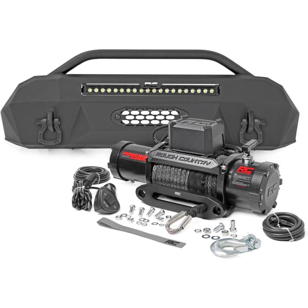 Rough Country LED Hybrid Front Bumper w/9500s Winch for 16-22 Tacoma – 10726
