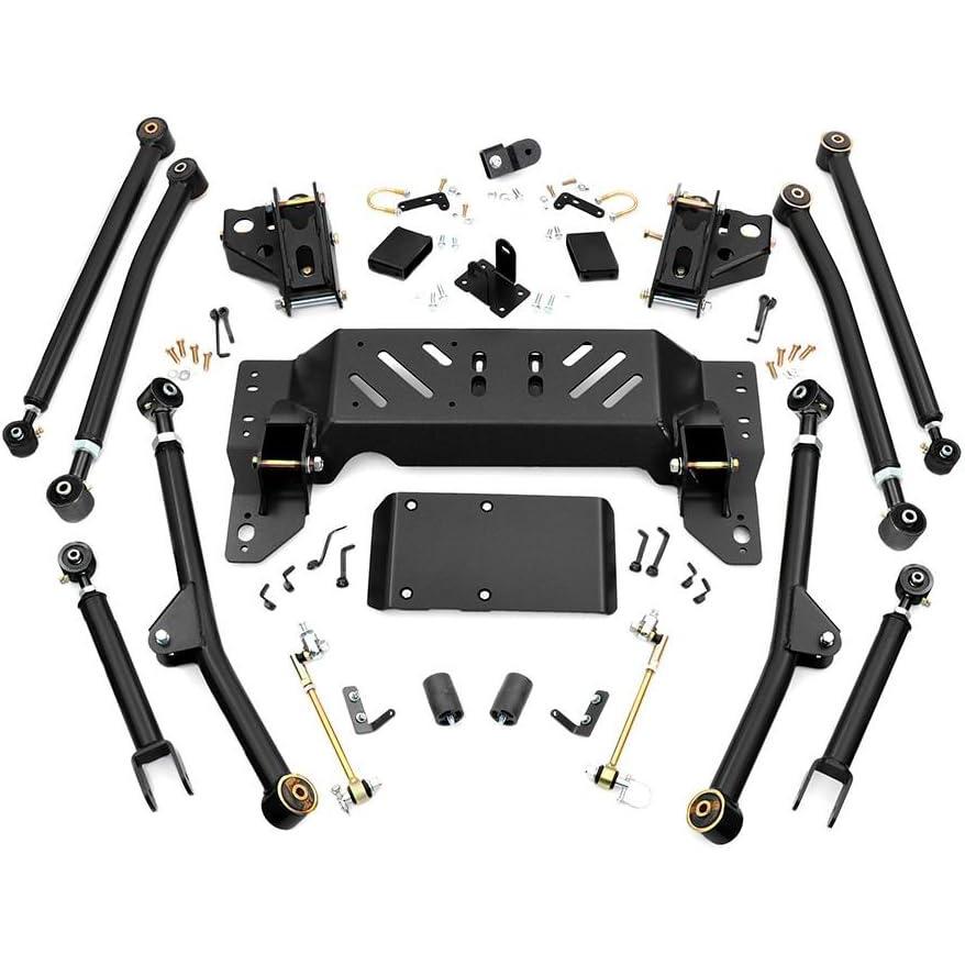 Boasting some impressive features, the ZJ Longarm Kit is a comprehensive package including everything needed for a great suspension lift while maintaining the vehicle's crucial center of gravity. The kit includes adjustable high-clearance X-Flex upper and lower control arms with Clevite bushings, featuring X-Flex joints. This lift kit features high-clearance components with a front y-link and rear 4-link control arm design. This promotes extreme axle flex while keeping pinion angles optimized.