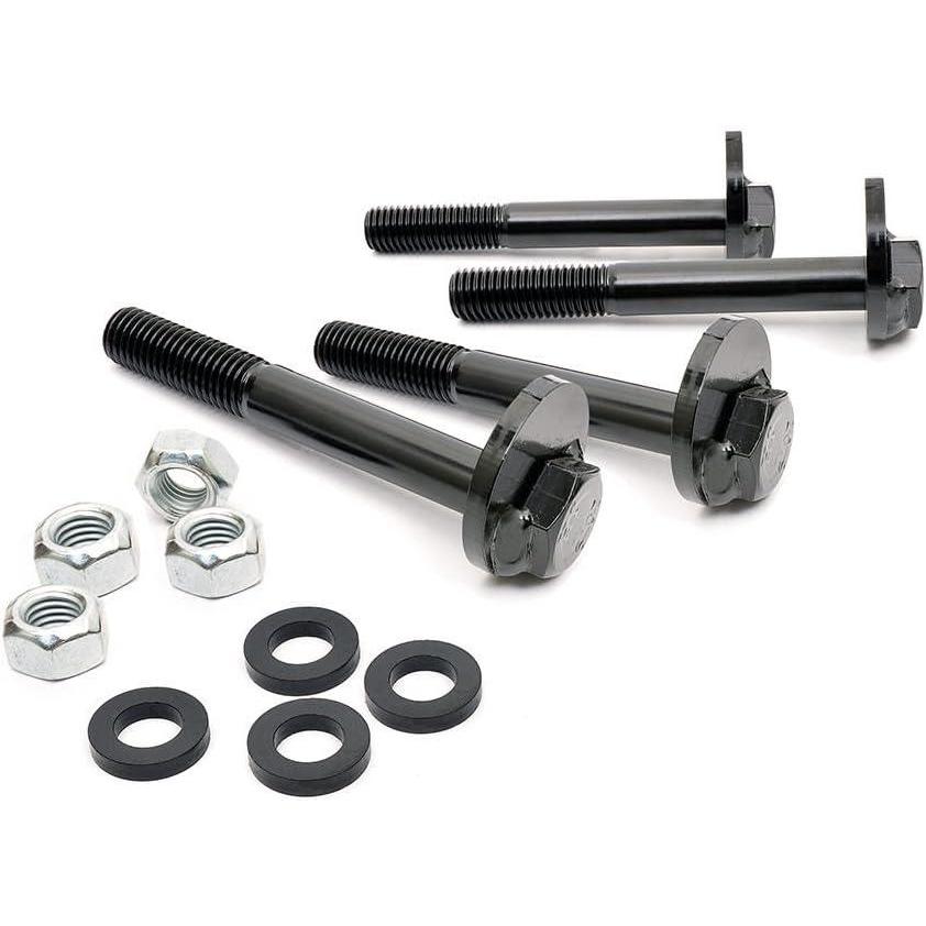 Get the most out of your alignment with this Frontier Cam-Bolt Kit. Factory cam-bolts were removed in their design. This kit allows you to regain proper alignment that don't come equipped with Factory Lower Arm Cam Bolts. This “must-have” helps lifted vehicles achieve optimal alignment settings by adding negative camber in the front, thus offsetting the additional height.