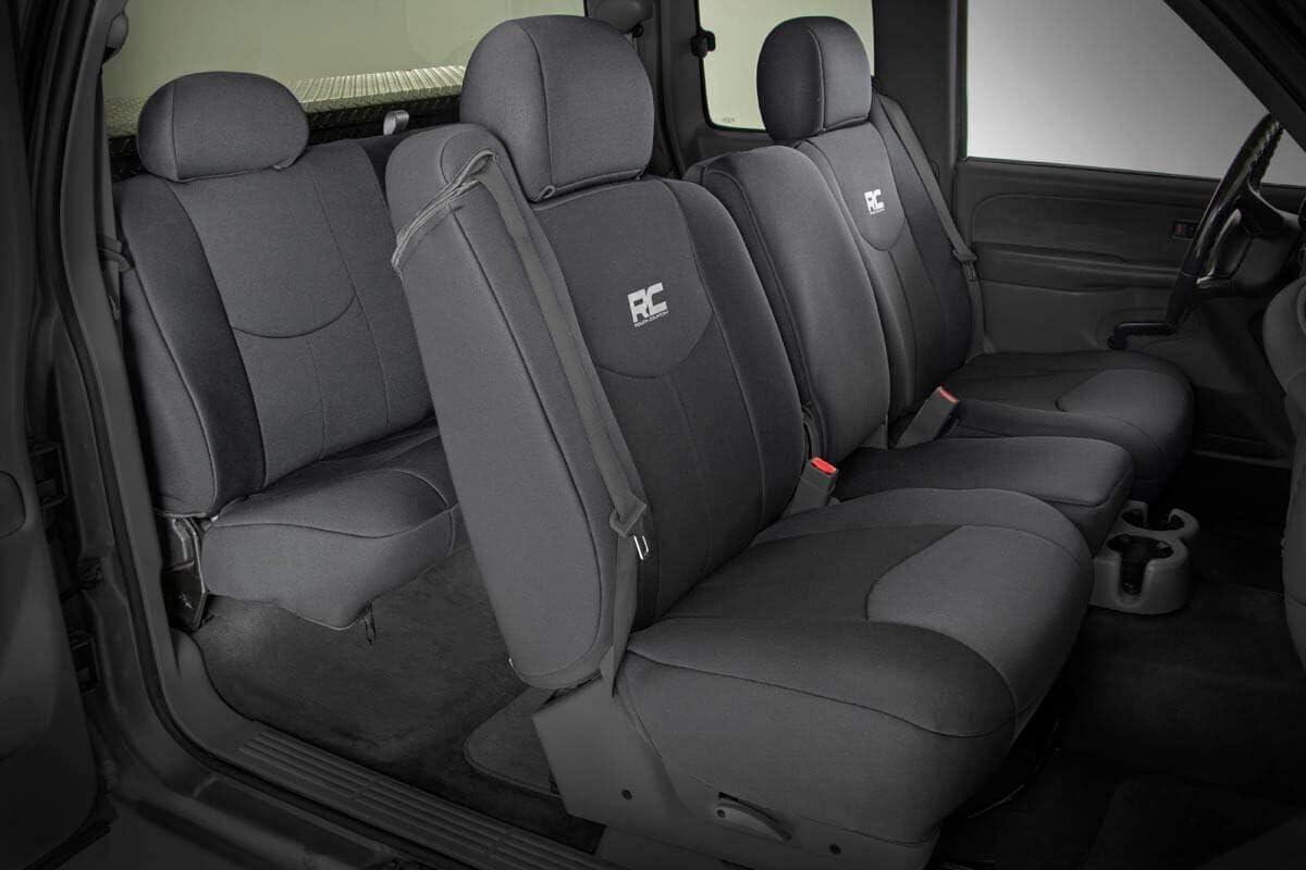 imageRough Country Neoprene Rear Seat Covers for Chevy Silverado ampamp GMC Sierra 1500 19992006  Waterproof ampamp UV Resistant Foam Padded Rear Seat Cover Set