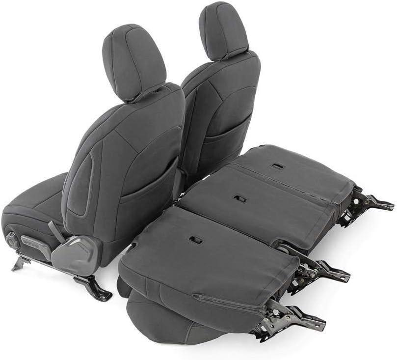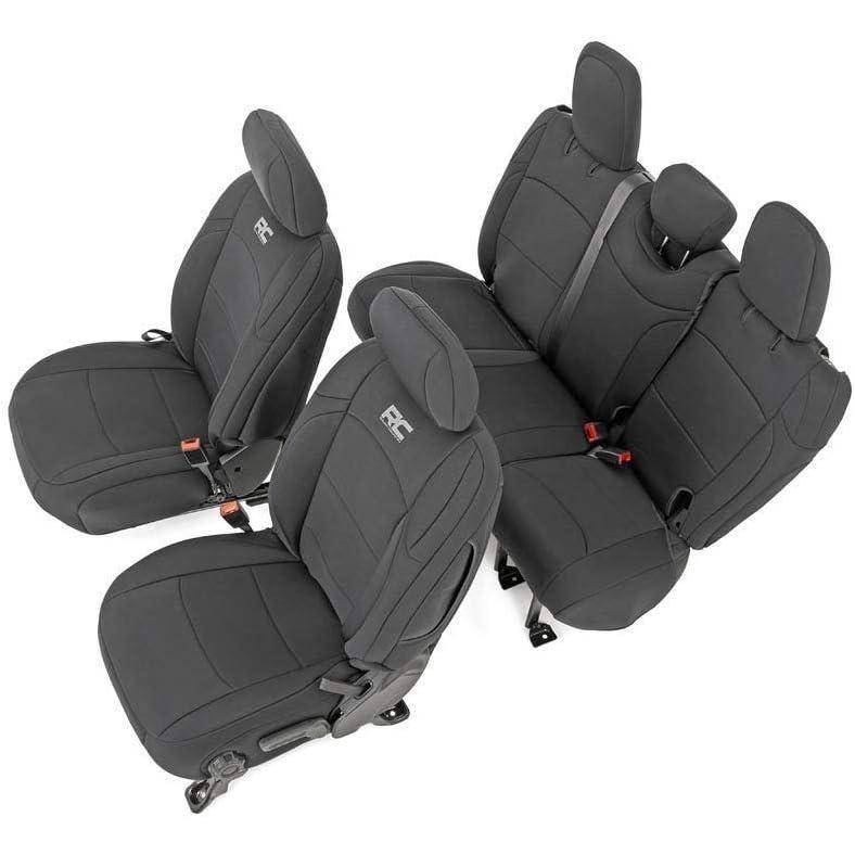 Rough Country Neoprene Seat Covers for Jeep Wrangler JL 4-Door (2018-2024) w/No Rear Arm Rest – Waterproof & UV Resistant, Foam Padded, Front & Rear Seat Cover Set