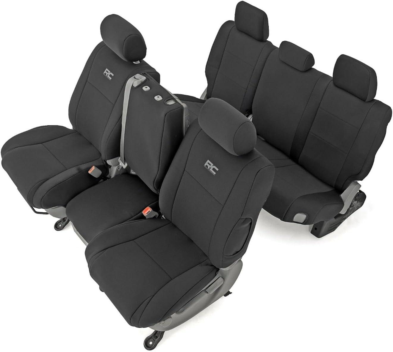Rough Country Neoprene Seat Covers for Toyota Tundra (2007-2013) Crew Cab with Jumpseat - Waterproof & UV Resistant, Foam Padded, Front & Rear Seat Cover Set