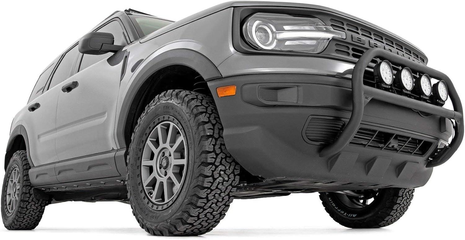 Outfit your Bronco Sport right with Rough Country's Bumper Light Mount Bar. This durable 2-inch thick tubular steel bar is coated with corrosion-resistant black powder coat providing great looks while offering multiple LED mounting solutions for the front of your vehicle.