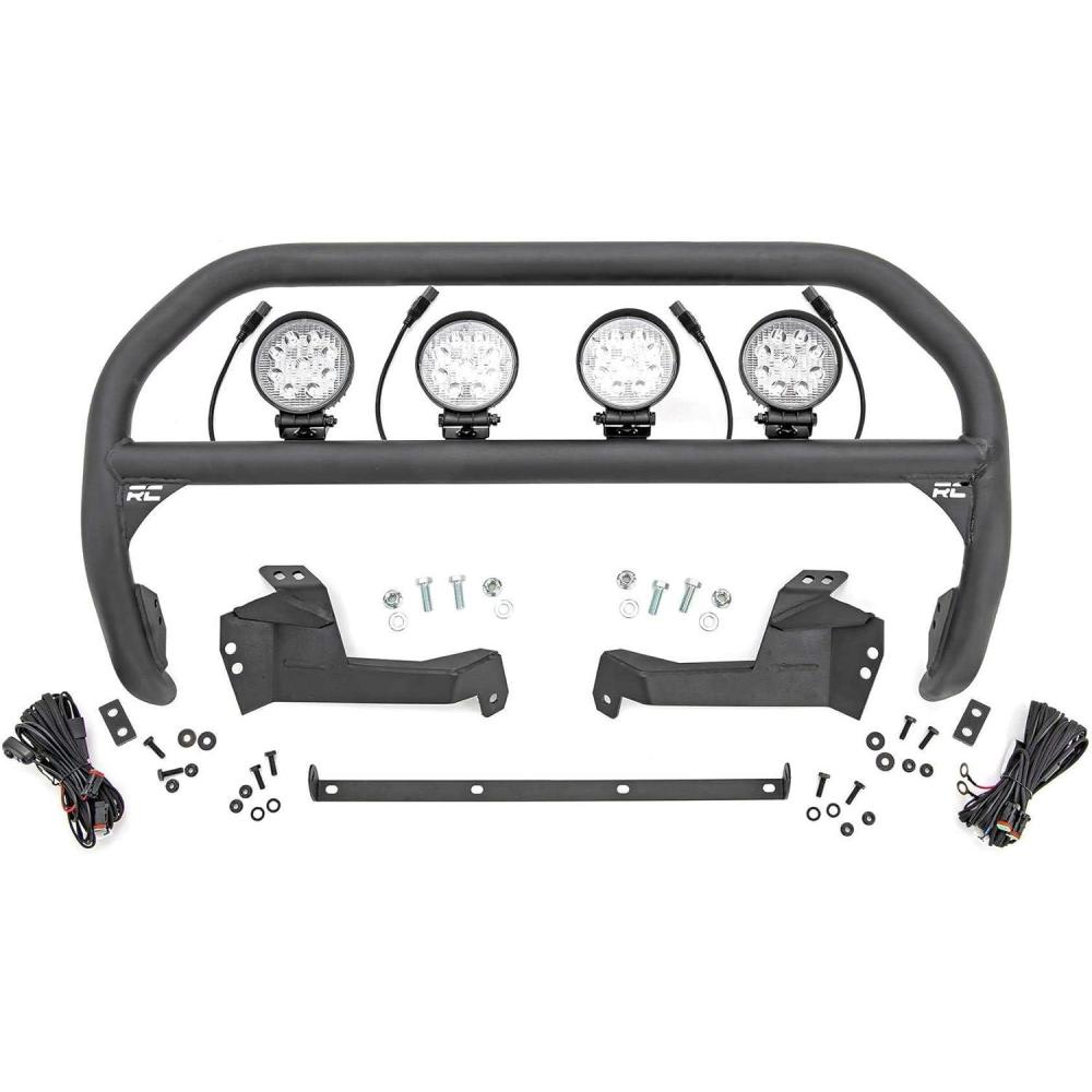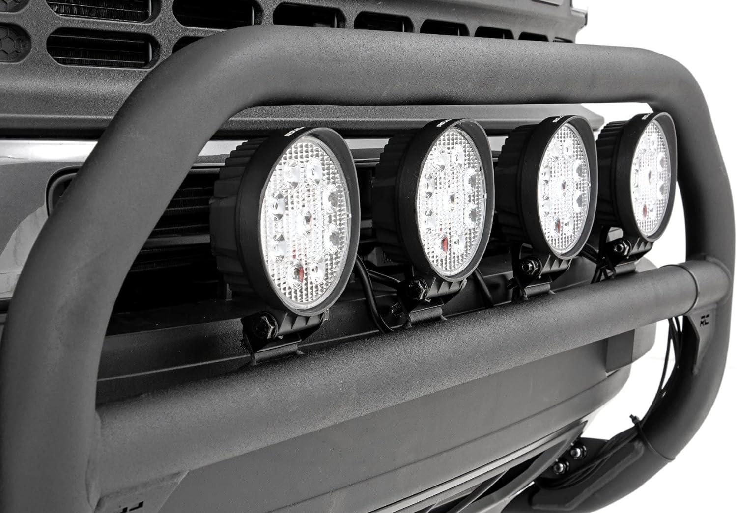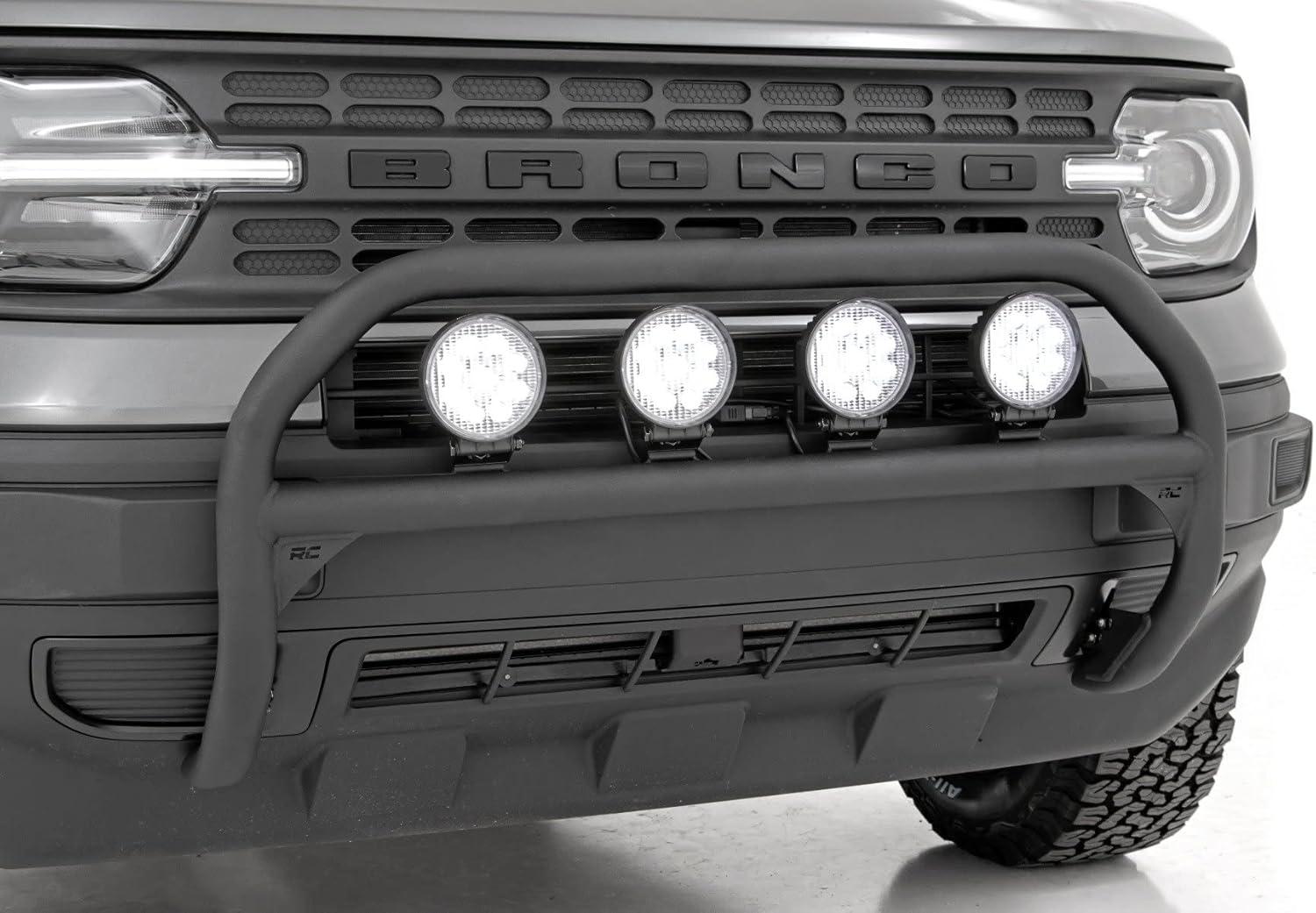 Rough Country Nudge Bar Quad 3″ LED Light Kit for Ford Bronco 4WD (2021-2024) – (4) 3-inch Osram Wide Angle LED Pods, 2-inch Tubular Bull Bar