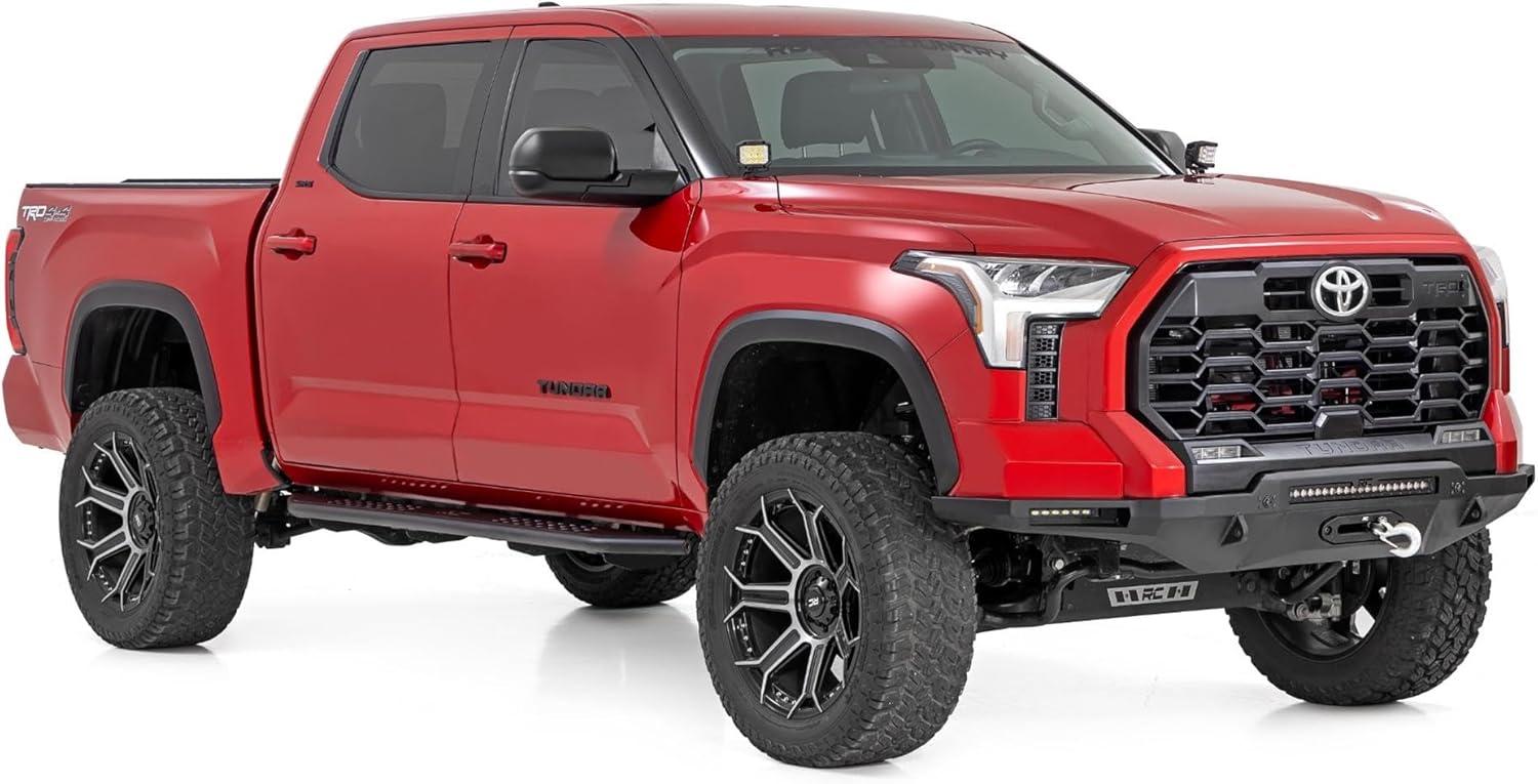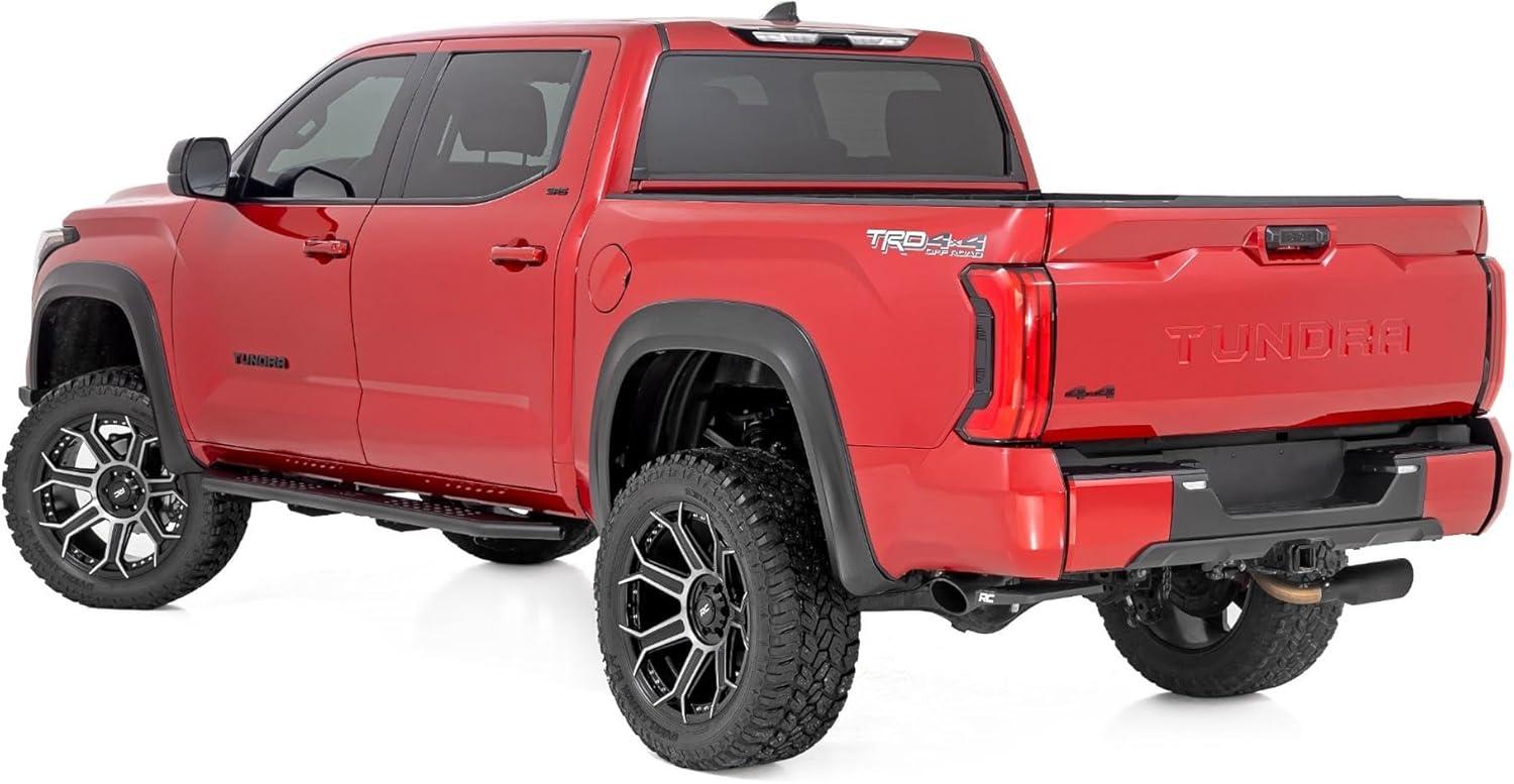 Rugged Durability: Made from durable steel and wrapped with a tubular side wall, the OV2 Running Boards offer reliable protection against rocks and debris the trail throws your way. The 1 ¾ inch steel tubing provides added body protection, ensuring your Tundra stays in top condition no matter where you go.