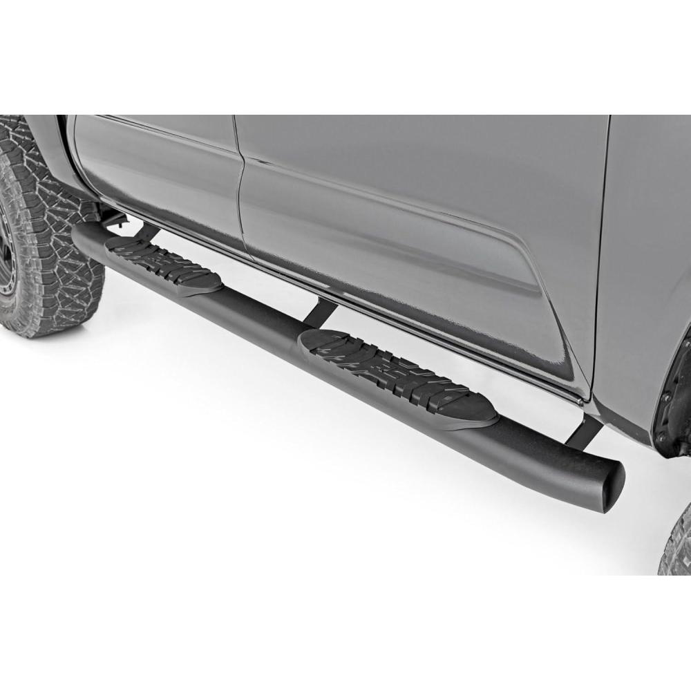 Give your Tacoma the perfect finishing touch with Rough Country's Oval Nerf Step Bars. They feature non-slip foot pads for secure footing with a classic OEM design that looks great on any Tacoma, including lifted models. These step bars are designed for both form and function with a curved and stylish look.