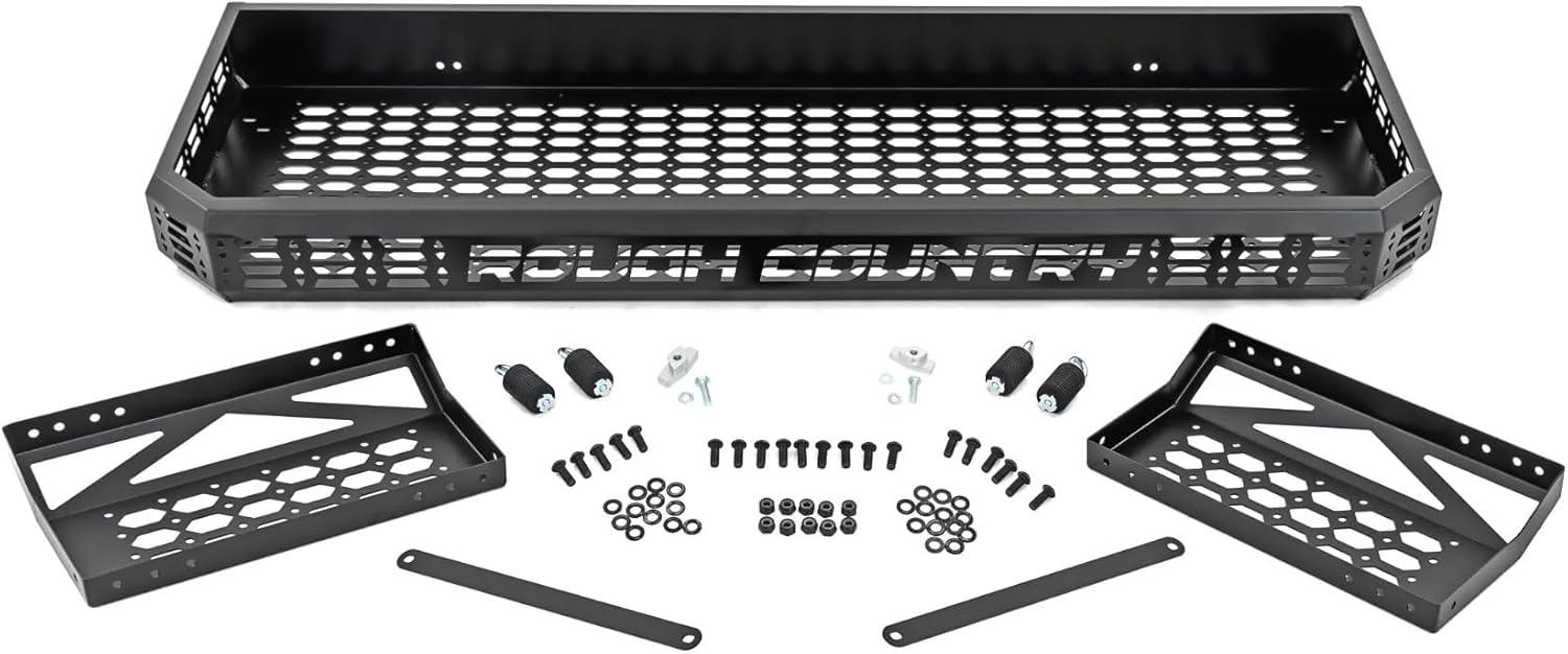 Take your UTV’s hauling ability to the next level with the Rough Country's Over Bed Cargo Rack, custom-built for Polaris Ranger and Can-Am Defender models. Engineered from durable, powder-coated steel, this rack delivers unbeatable strength and trail-ready durability while adding over 1,100 square inches of storage space.
