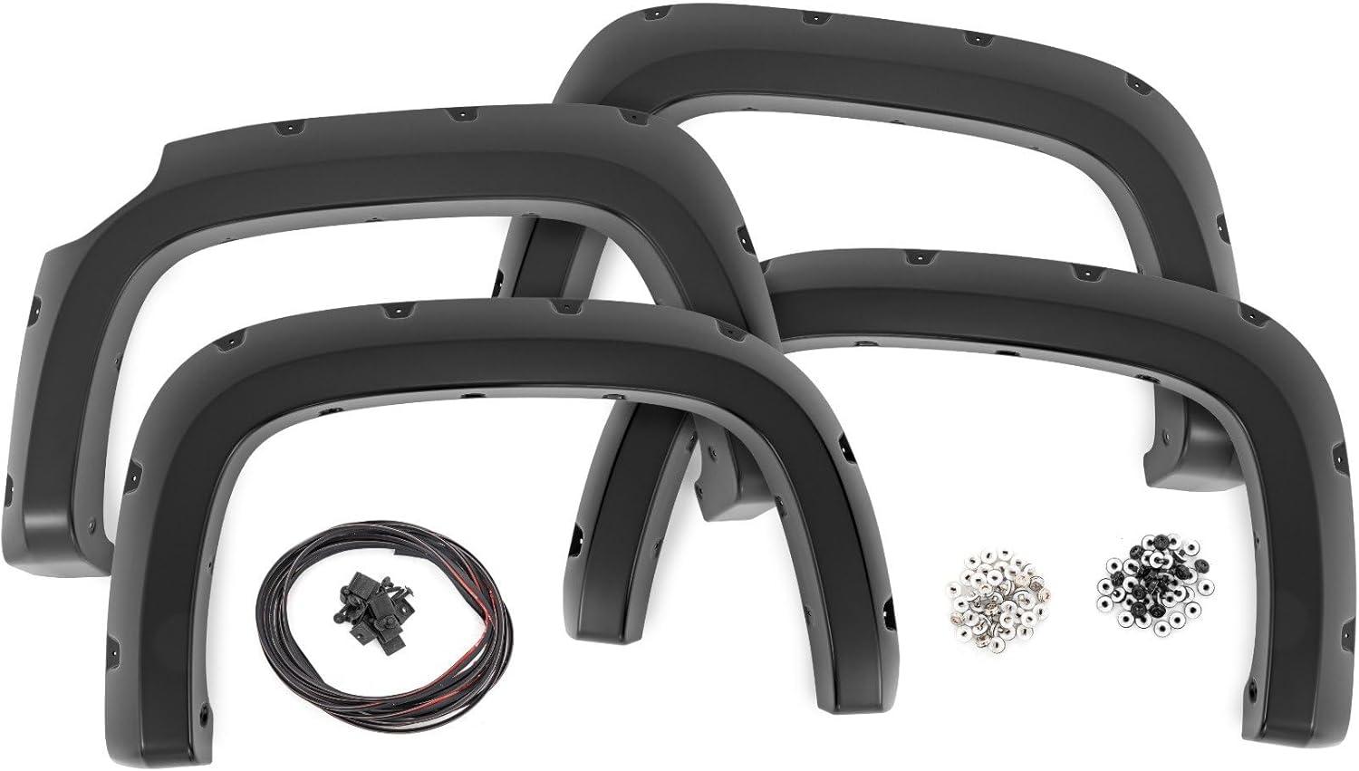 Add aggressive good looks quickly and easily with Rough Country's Fender Flares. Nothing compliments a new lift, wheels, and tires like a set of stylish, mean-looking fender flares. Rough Country's Fender Flares are designed with a simulated riveted look. These fender accessories bolt-on quickly and easily in a few secure mounting points, making installation a cinch.