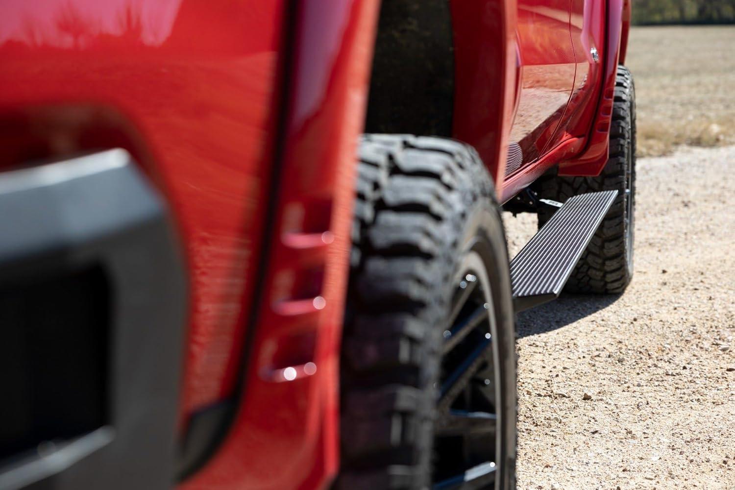 Premium Construction. The Rough Country E-Board Steps combine durability, strength, and style. These 6″ all-season steps are made from lightweight yet durable aluminum and can support up to 660 lbs per side. Equipped with dual motor technology, these steps can handle anything Mother Nature throws their way. They feature an automatic 'SAFE-STOP' mechanism that engages if a blockage is detected and include an interior bypass switch for manual override. So whether you're heading out on a weekend errand or loading up for a camping trip, our electric steps offer reliable protection for all your adventures.
