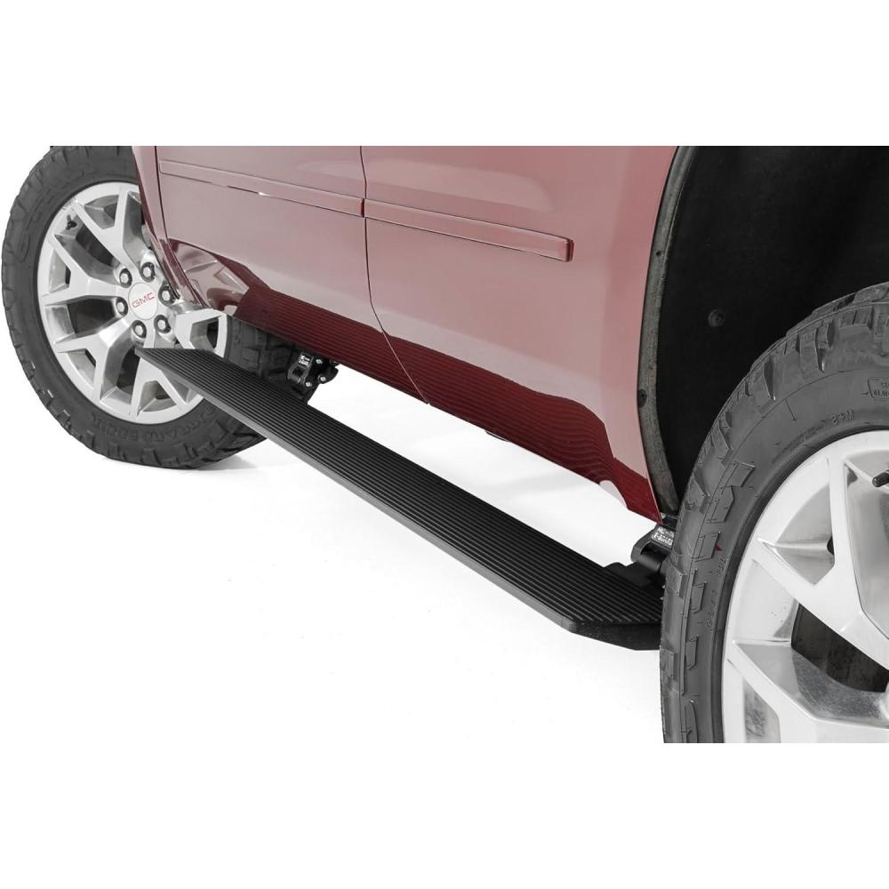 Step up in style. Sidesteps have come a long way, and now we've taken them to the next level with Rough Country's Power Running Boards! These retractable E-Boards tuck tight for a clean look when not in use and automatically extend when the door is opened. With an anti-slip surface that provides a secure stepping area, getting in and out of your ride has never been easier. Our Power Running Boards also include LED lights that provide illumination when deployed and shut off when steps are closed, providing a sleek, aerodynamic look.