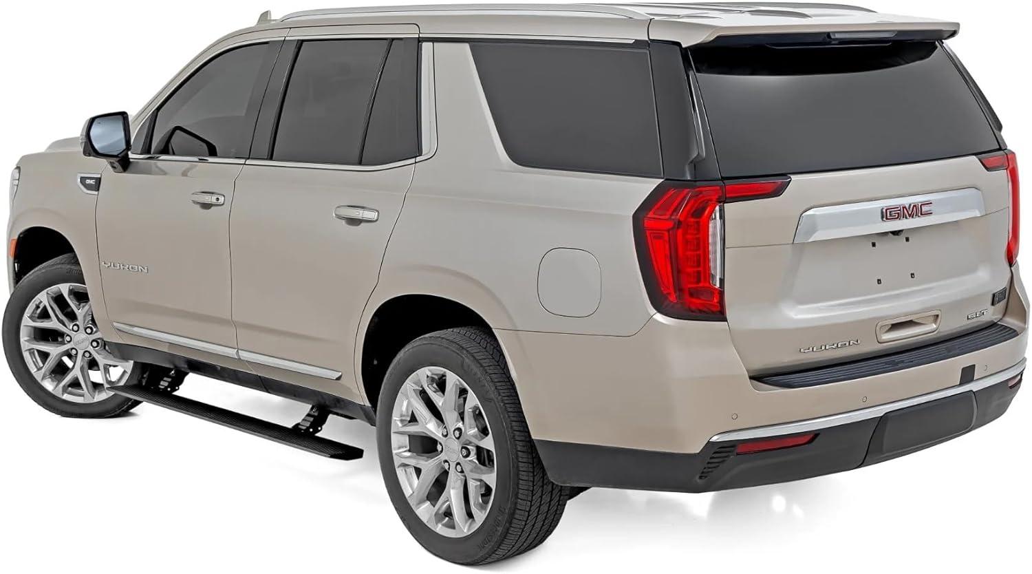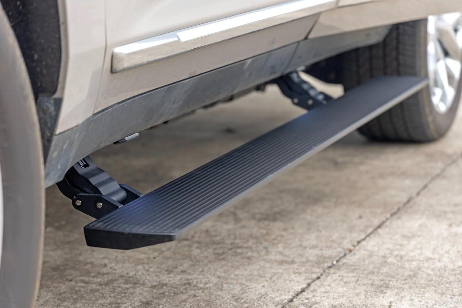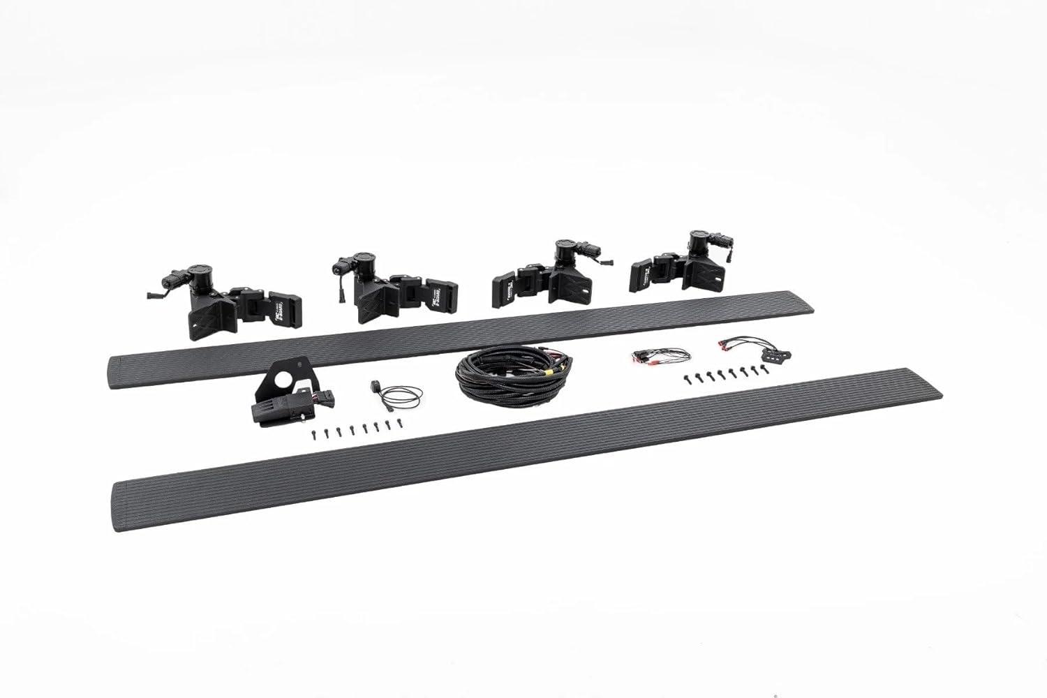 Premium Construction. The Rough Country E-Board Steps combine durability, strength, and style. These 6″ all-season steps are made from lightweight yet durable aluminum and can support up to 660 lbs per side. Equipped with dual motor technology, these steps can handle anything Mother Nature throws their way. They feature an automatic 'SAFE-STOP' mechanism that engages if a blockage is detected and include an interior bypass switch for manual override. So whether you're heading out on a weekend errand or loading up for a camping trip, our electric steps offer reliable protection for all your adventures.