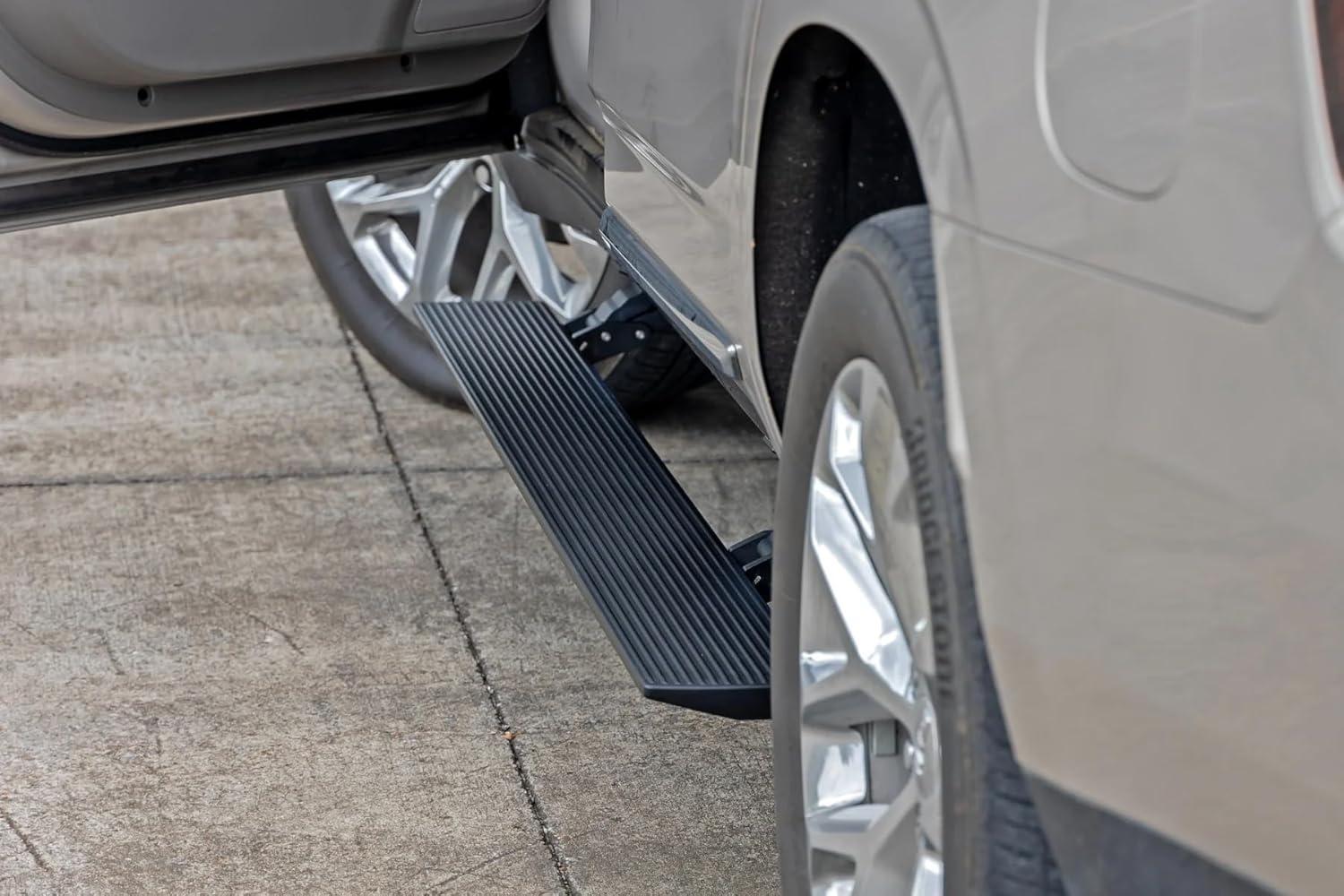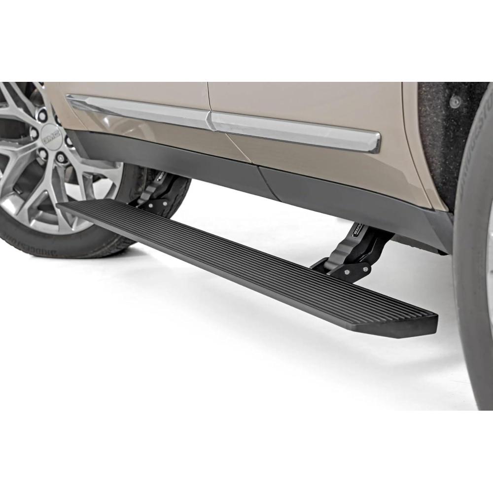 Step up in style. Sidesteps have come a long way, and now we've taken them to the next level with Rough Country's Power Running Boards! These retractable E-Boards tuck tight for a clean look when not in use and automatically extend when the door is opened. With an anti-slip surface that provides a secure stepping area, getting in and out of your ride has never been easier. Our Power Running Boards also include LED lights that provide illumination when deployed and shut off when steps are closed, providing a sleek, aerodynamic look.